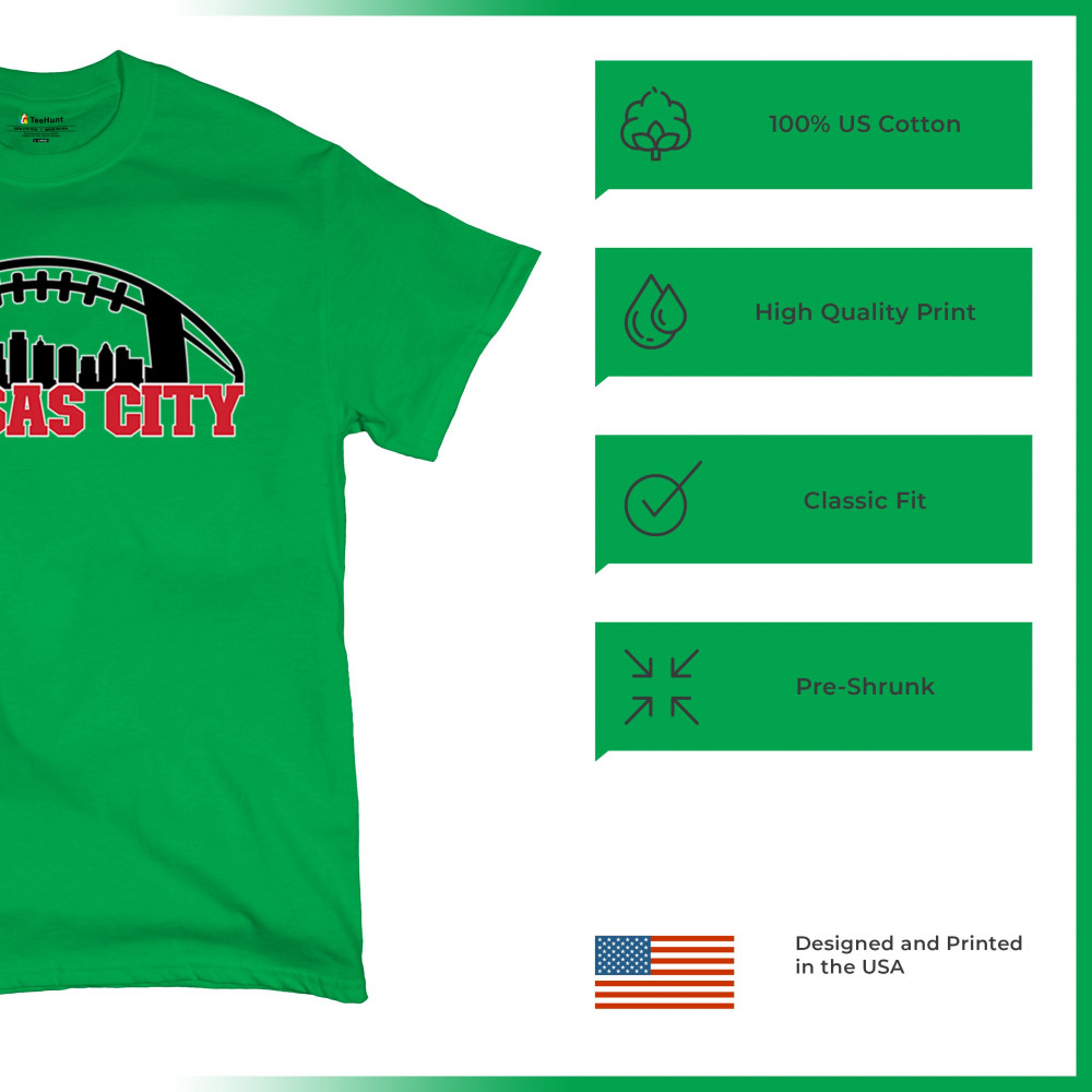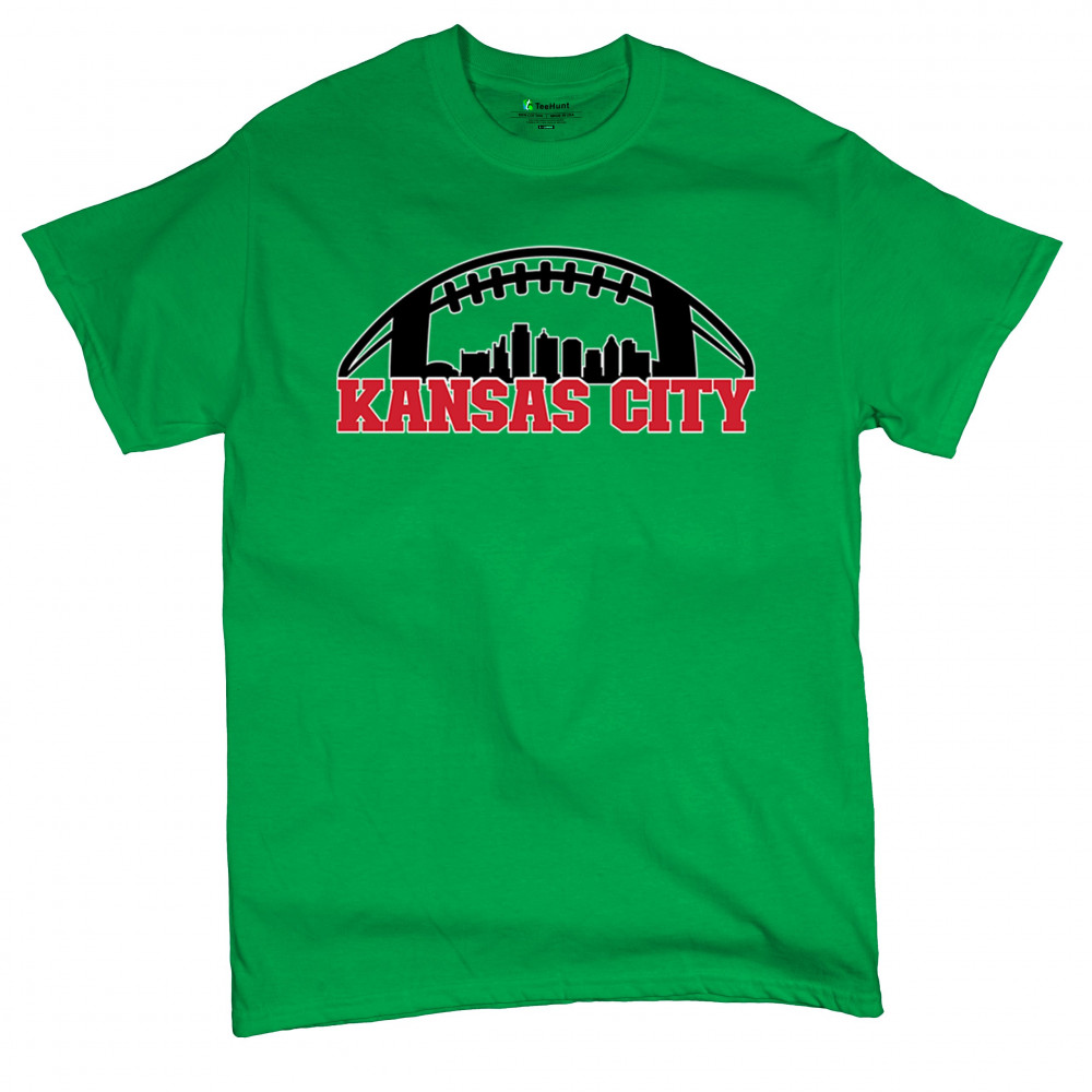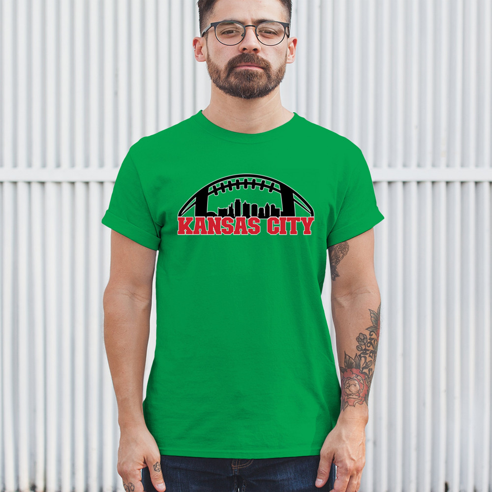 Celebrate Kansas City with a bold football design featuring the city skyline. Perfect for game days, tailgates, or proud sports fans.