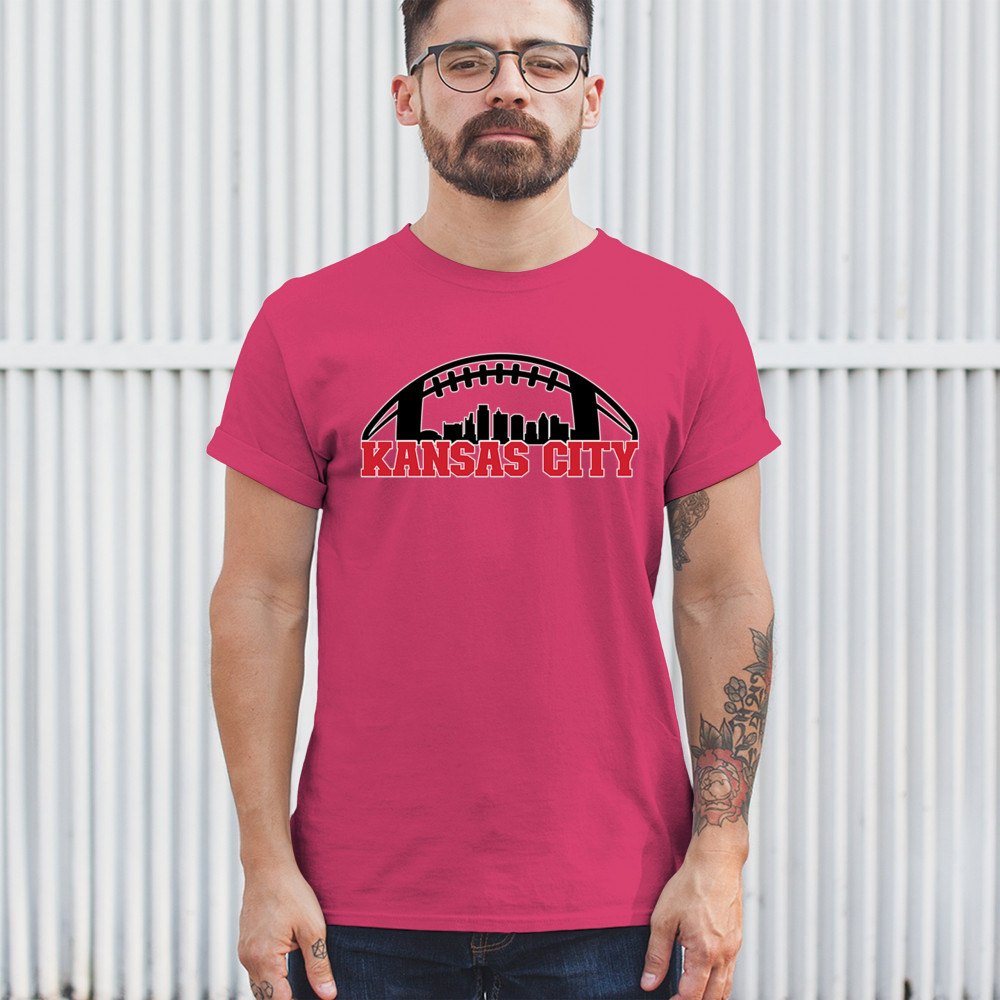 Celebrate Kansas City with a bold football design featuring the city skyline. Perfect for game days, tailgates, or proud sports fans.