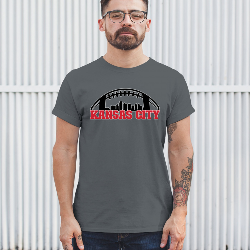 Celebrate Kansas City with a bold football design featuring the city skyline. Perfect for game days, tailgates, or proud sports fans.