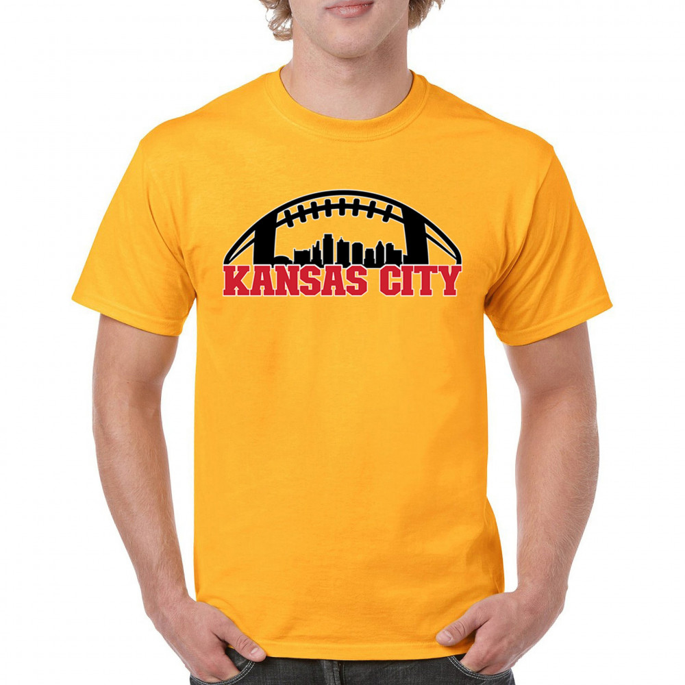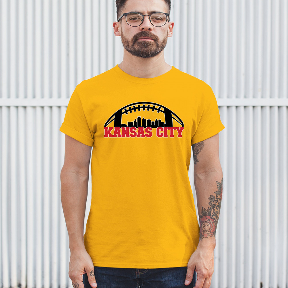 Celebrate Kansas City with a bold football design featuring the city skyline. Perfect for game days, tailgates, or proud sports fans.