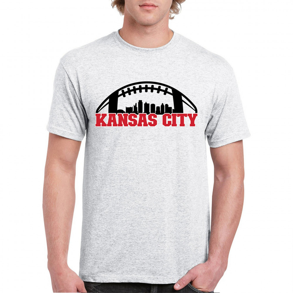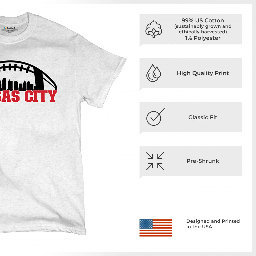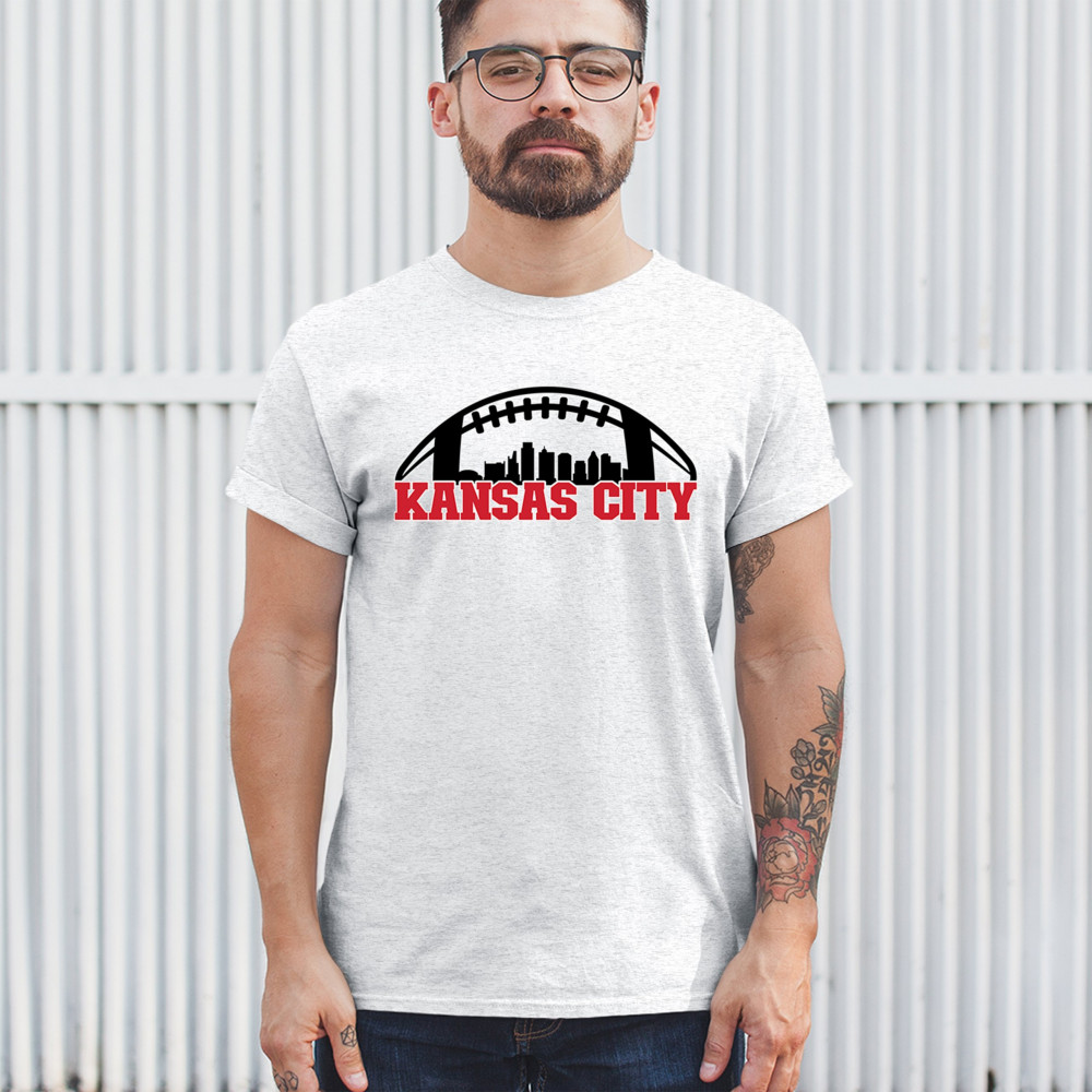 Celebrate Kansas City with a bold football design featuring the city skyline. Perfect for game days, tailgates, or proud sports fans.