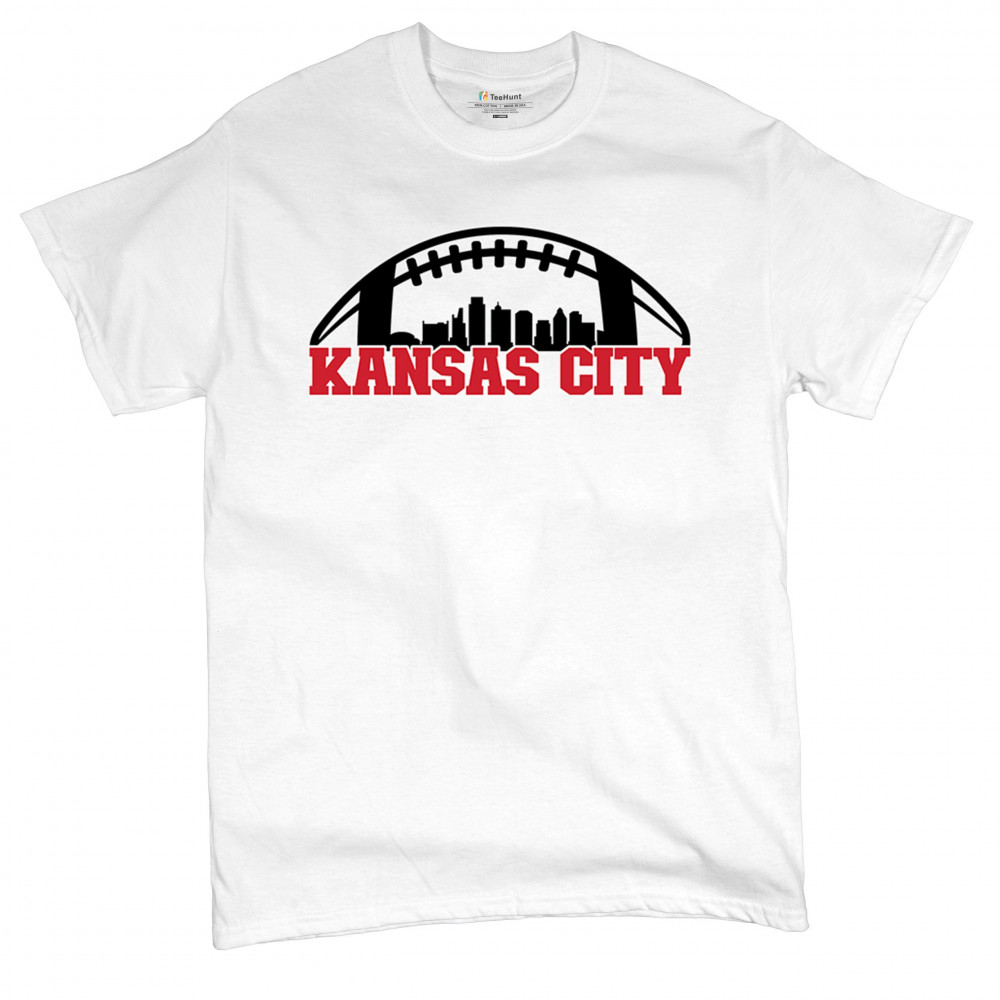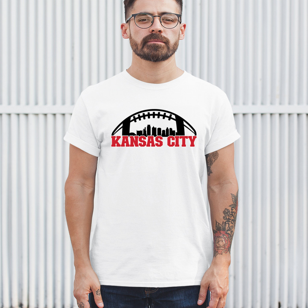 Celebrate Kansas City with a bold football design featuring the city skyline. Perfect for game days, tailgates, or proud sports fans.