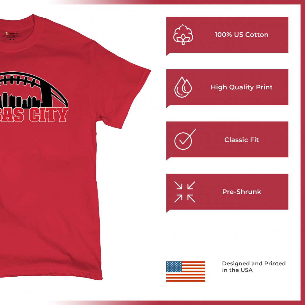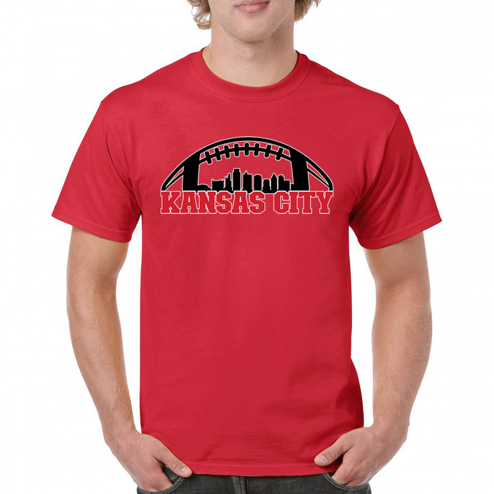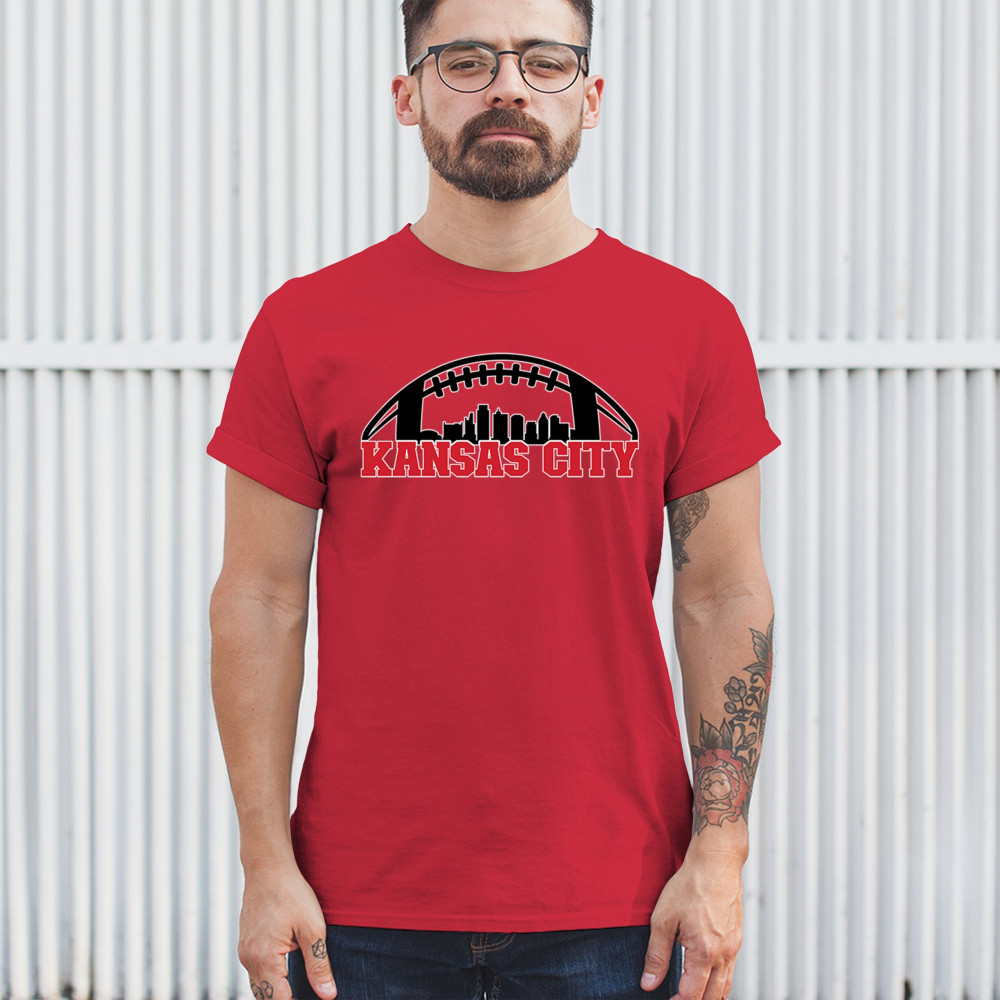 Celebrate Kansas City with a bold football design featuring the city skyline. Perfect for game days, tailgates, or proud sports fans.