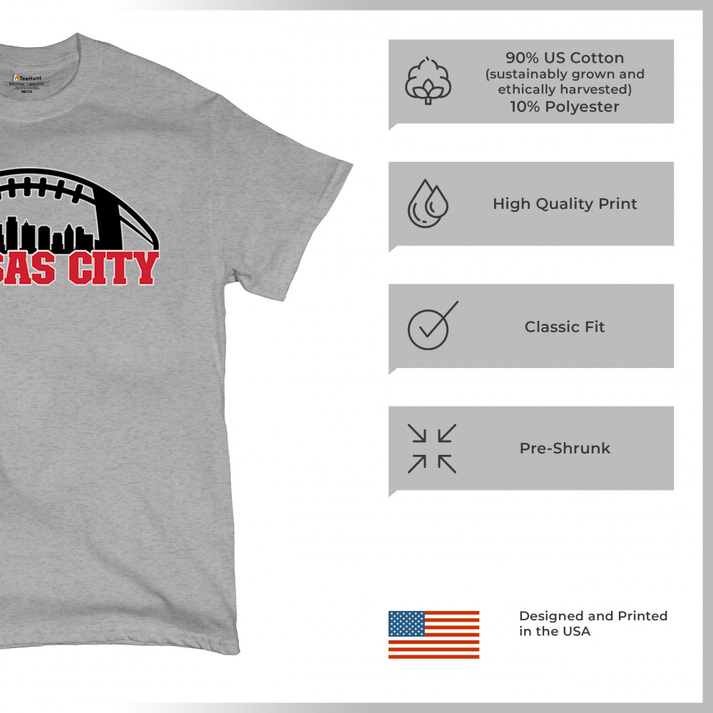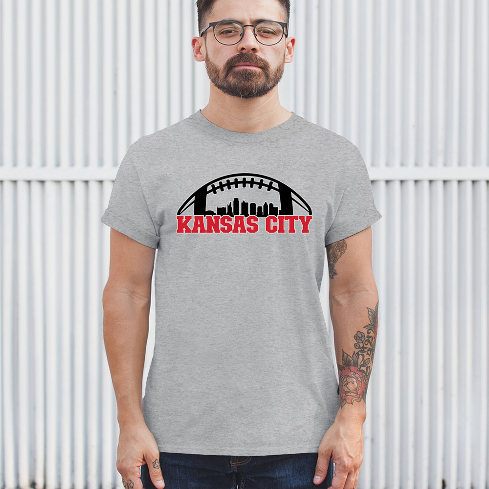 Celebrate Kansas City with a bold football design featuring the city skyline. Perfect for game days, tailgates, or proud sports fans.