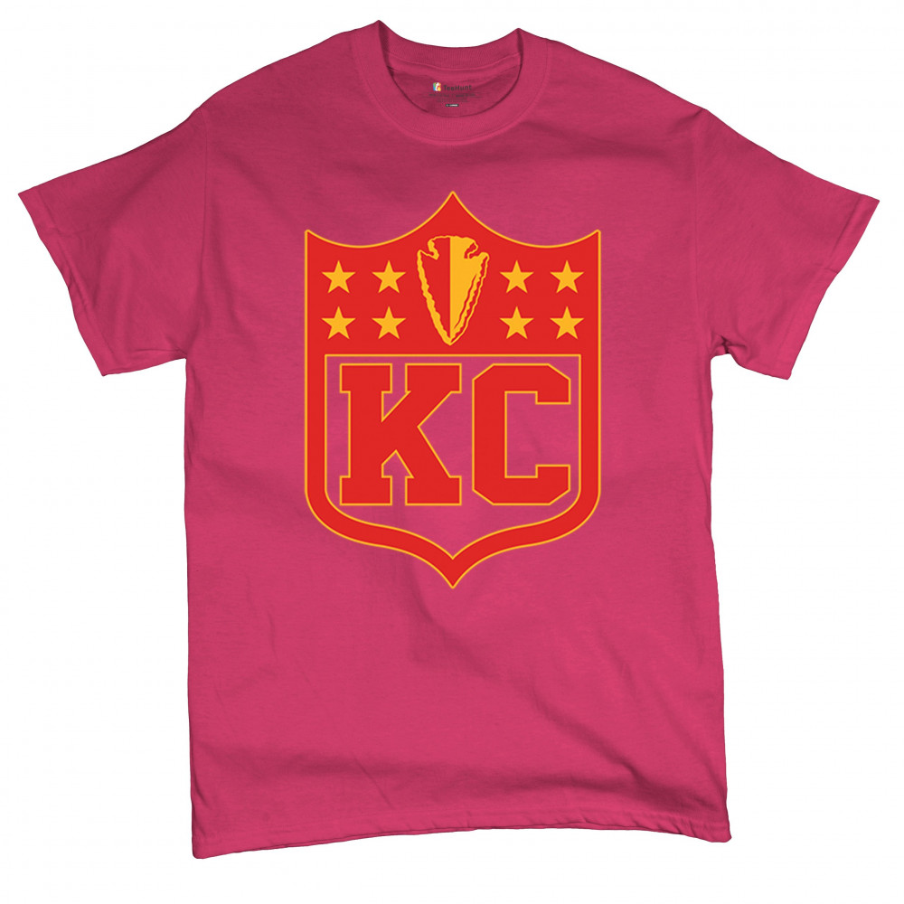 Kansas KC shield design celebrating red and gold pride, heart of America football, playoff vibes, river city culture, and big game energy.