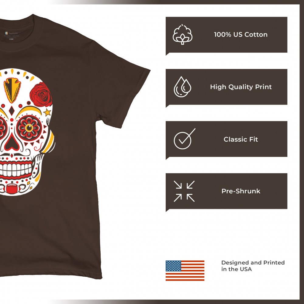 Celebrate Kansas City football with this Sugar Skull design inspired by Dia de los Muertos. Featuring Heart of America pride, red & gold tradition, and City of Fountains identity, it’s made for playoff energy, tailgate culture, and fantasy league rivalries. A bold calavera for KC fans.