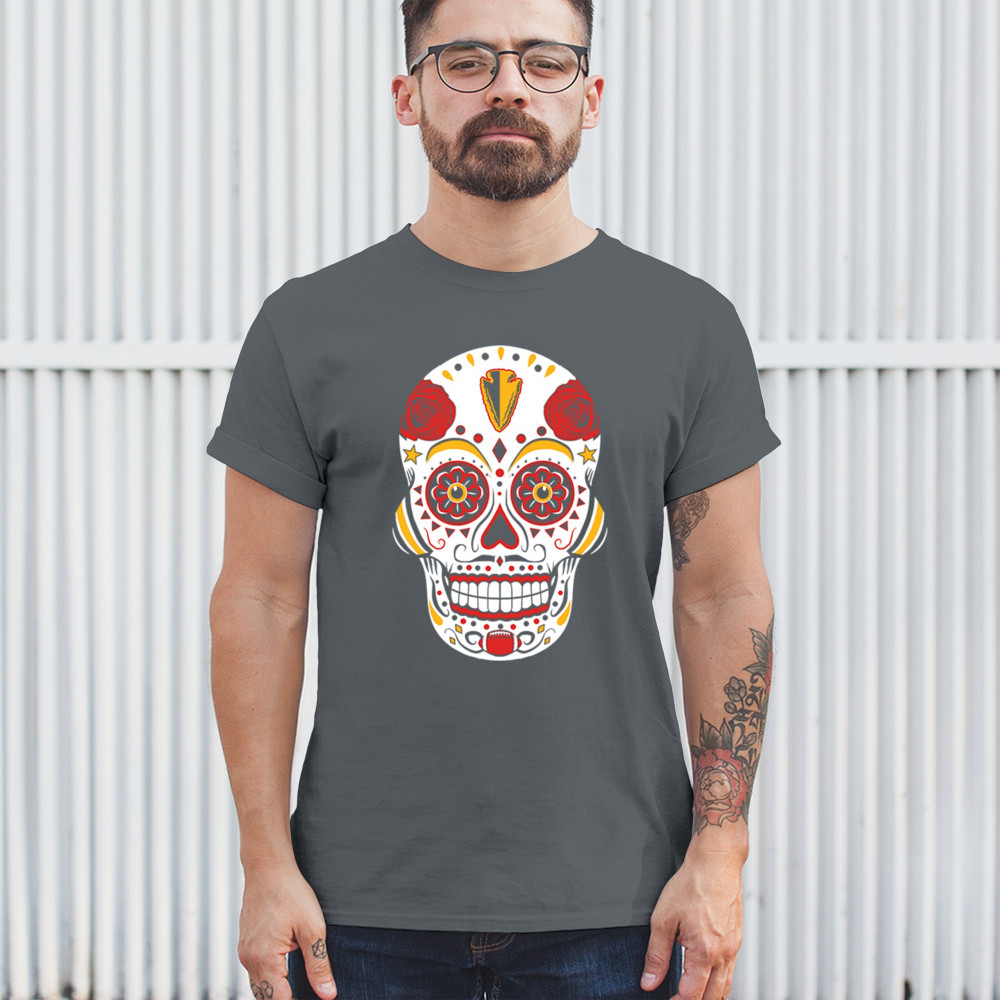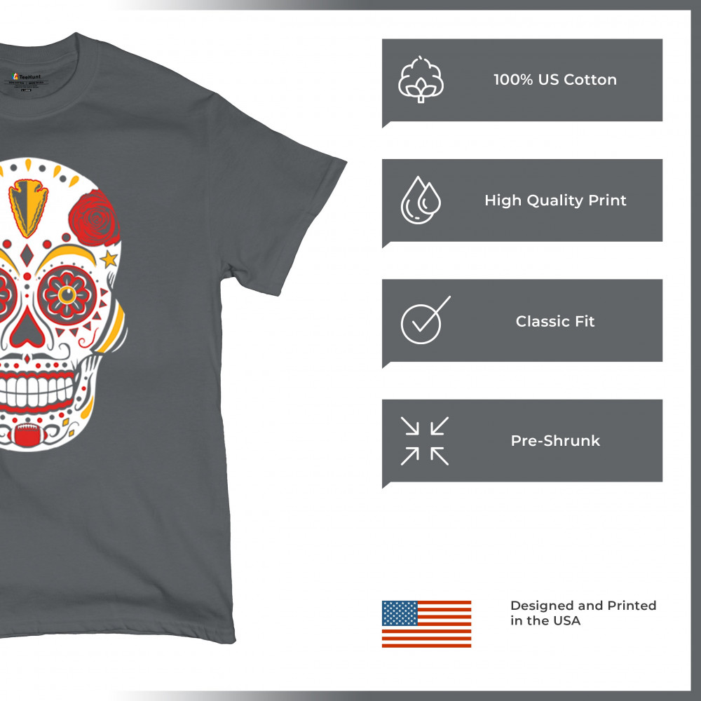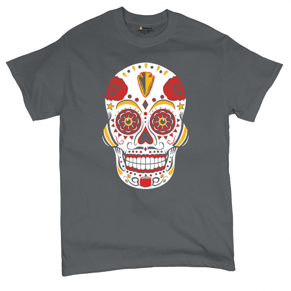 Celebrate Kansas City football with this Sugar Skull design inspired by Dia de los Muertos. Featuring Heart of America pride, red & gold tradition, and City of Fountains identity, it’s made for playoff energy, tailgate culture, and fantasy league rivalries. A bold calavera for KC fans.