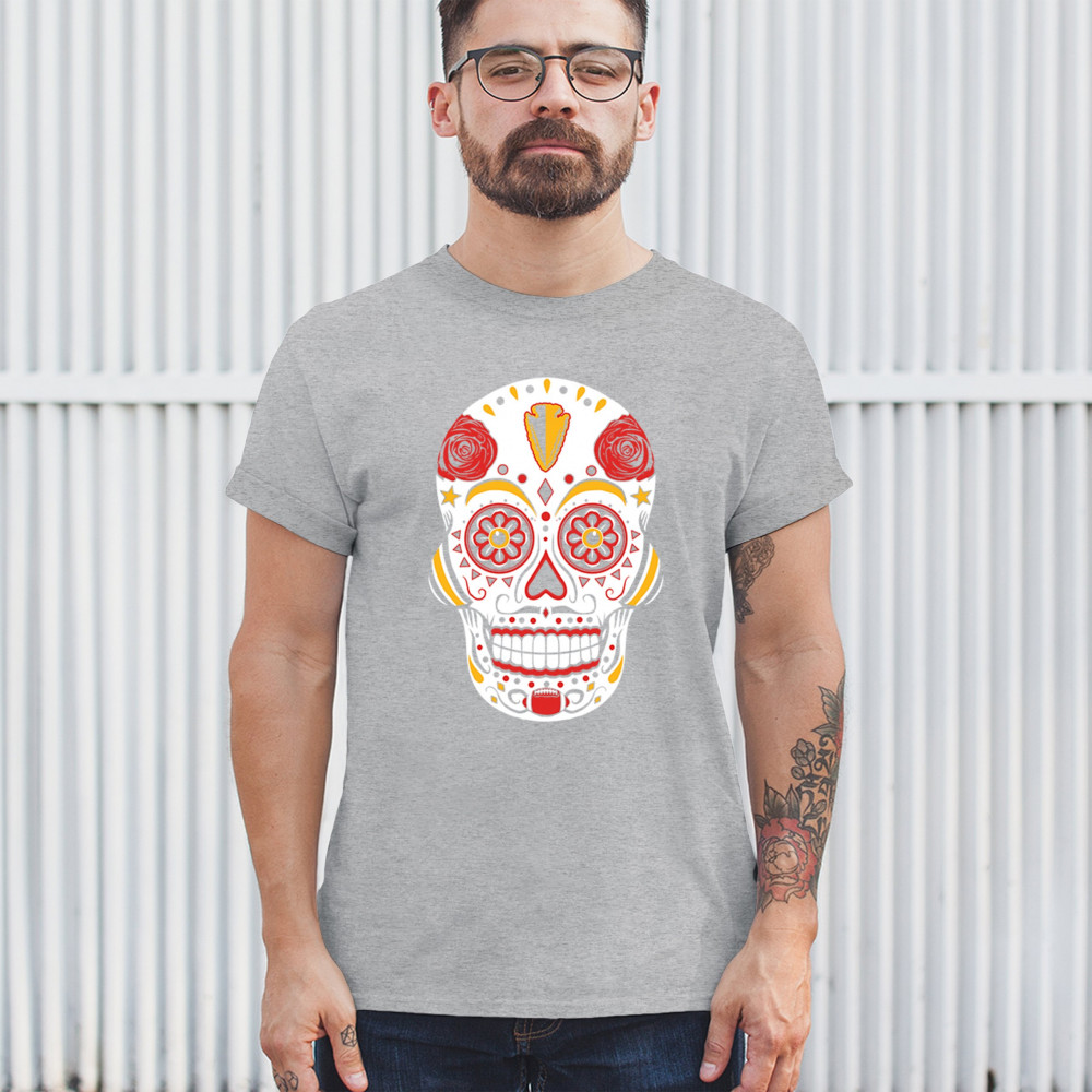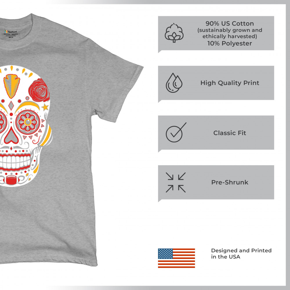 Celebrate Kansas City football with this Sugar Skull design inspired by Dia de los Muertos. Featuring Heart of America pride, red & gold tradition, and City of Fountains identity, it’s made for playoff energy, tailgate culture, and fantasy league rivalries. A bold calavera for KC fans.