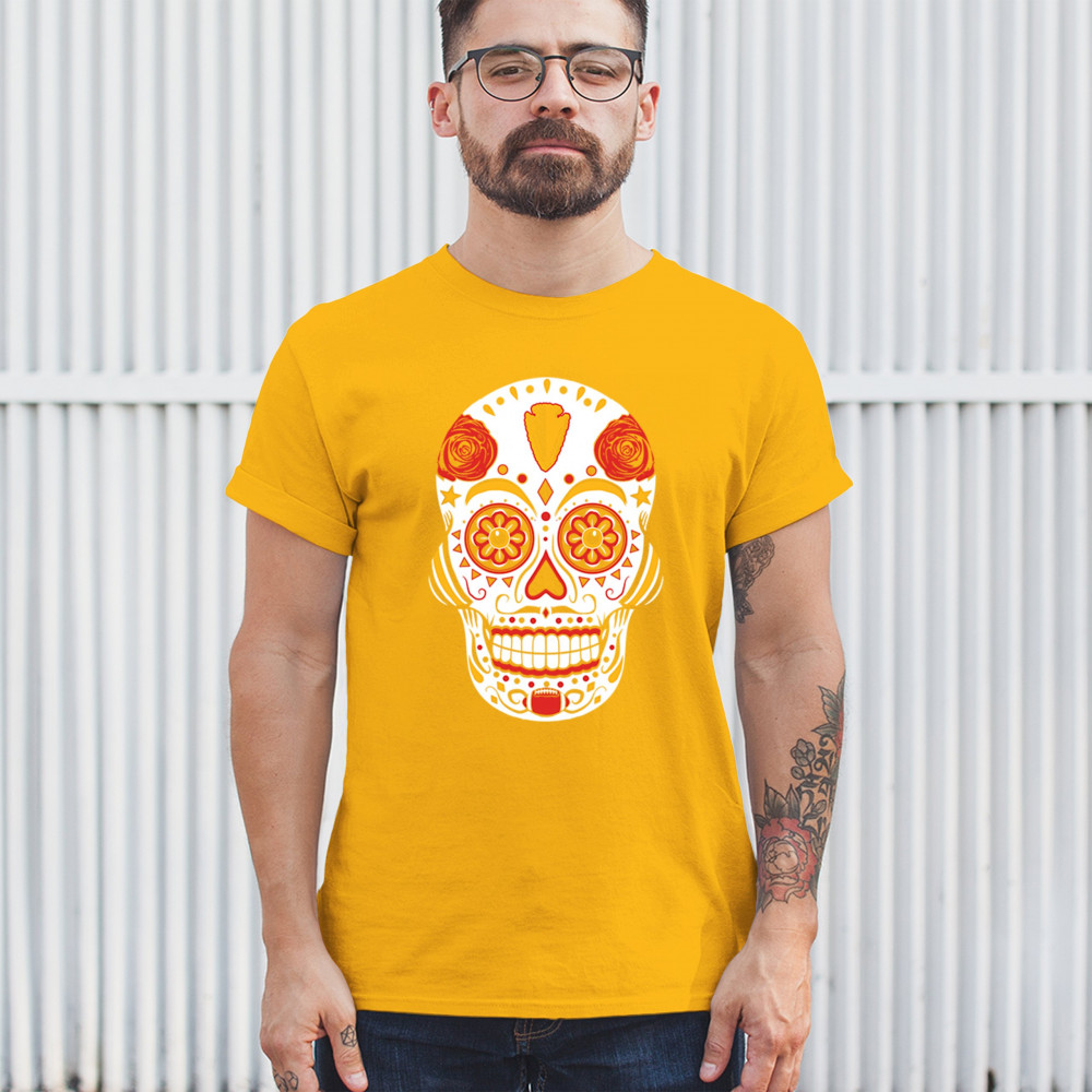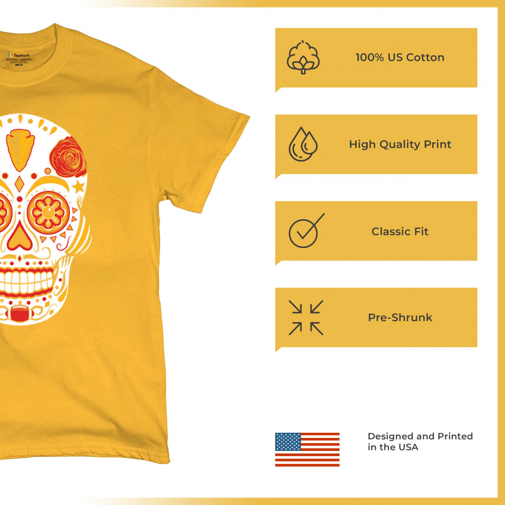 Celebrate Kansas City football with this Sugar Skull design inspired by Dia de los Muertos. Featuring Heart of America pride, red & gold tradition, and City of Fountains identity, it’s made for playoff energy, tailgate culture, and fantasy league rivalries. A bold calavera for KC fans.