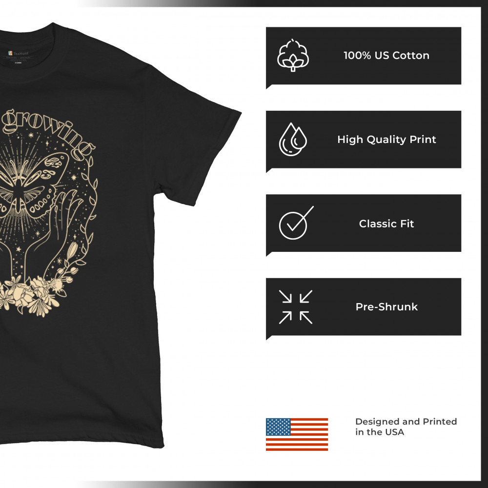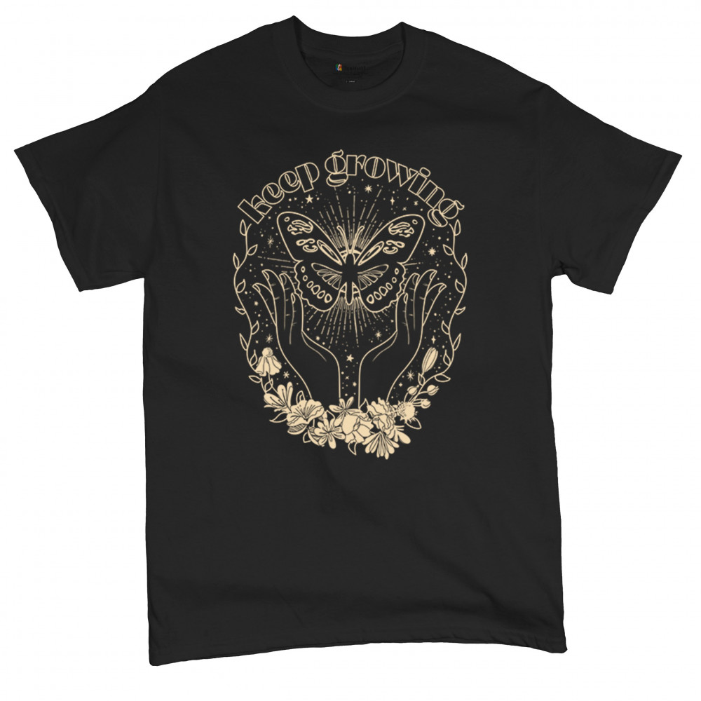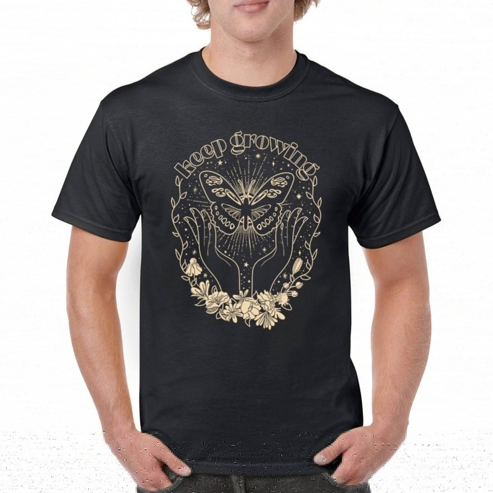 Step into your transformation with this Keep Growing design, featuring a celestial butterfly held between graceful hands and blooming flowers. A visual symbol of healing, renewal, and inner strength—perfect for journaling, meditation, yoga, or nature-inspired living. Ideal for dreamers, wellness seekers, and spiritual adventurers.