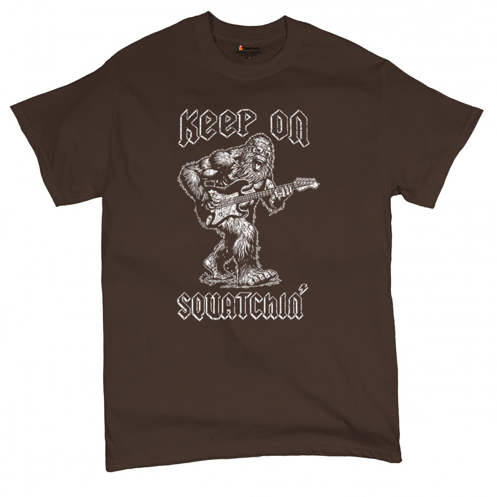 Celebrate music and adventure with the "Keep on Squatchin’" design! Bigfoot rocking a guitar makes this perfect for Sasquatch and music fans.