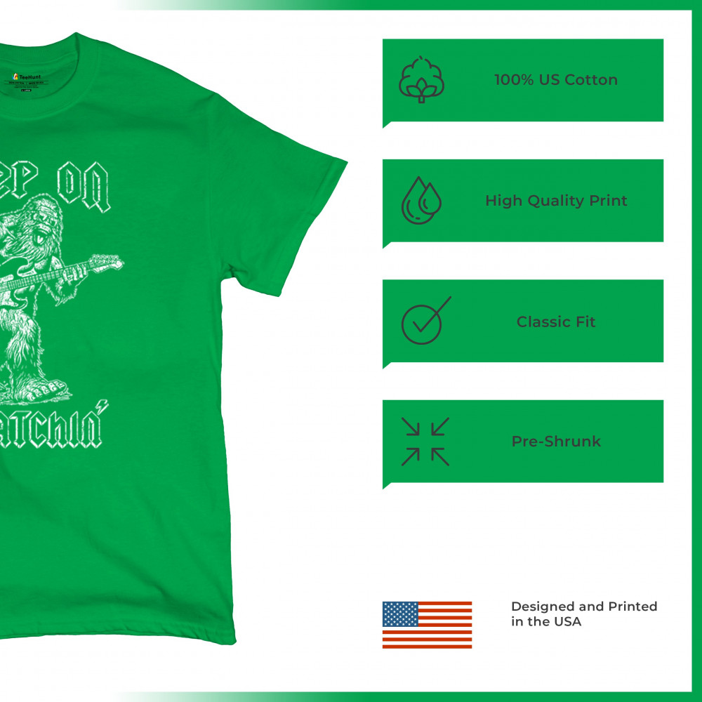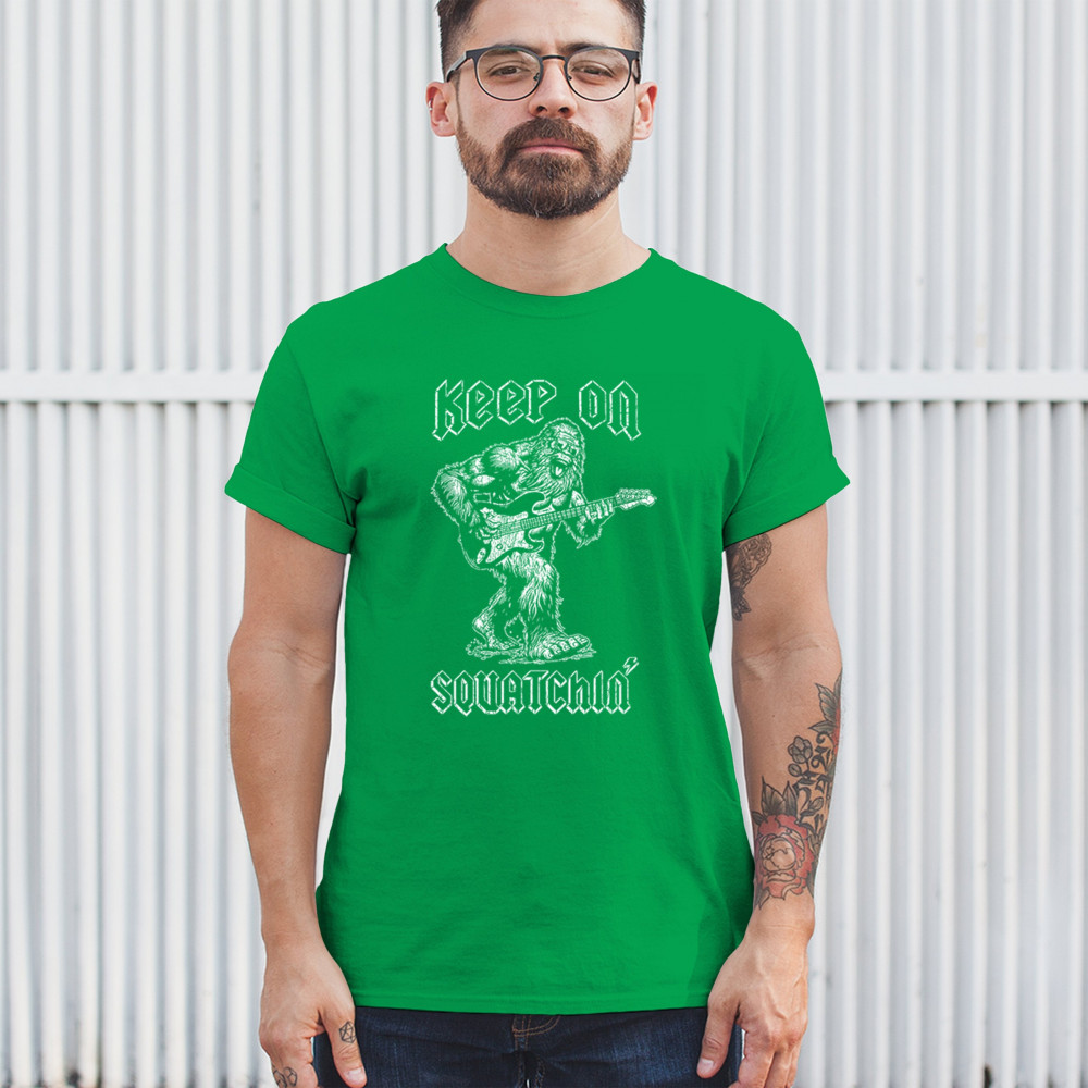 Celebrate music and adventure with the "Keep on Squatchin’" design! Bigfoot rocking a guitar makes this perfect for Sasquatch and music fans.