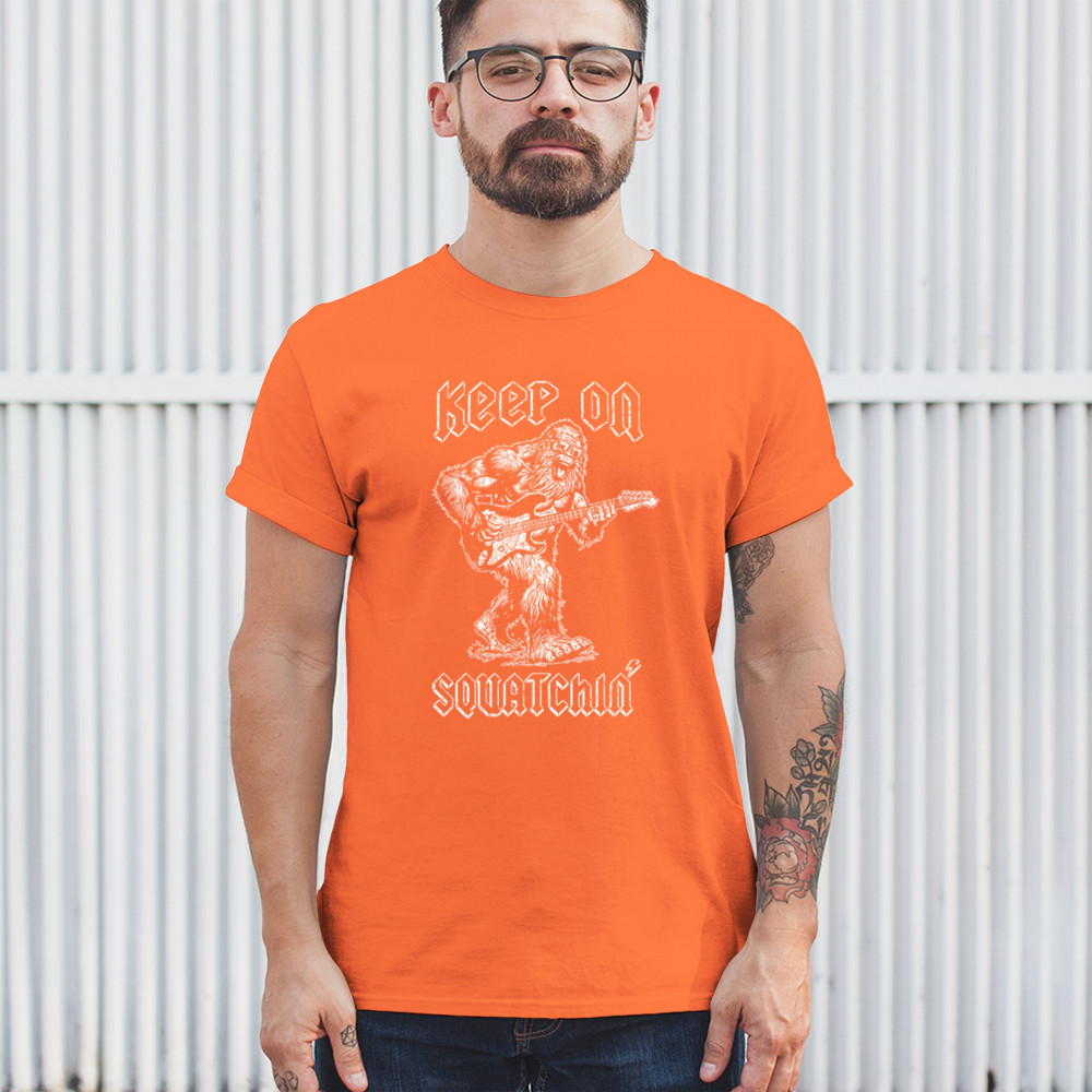 Celebrate music and adventure with the "Keep on Squatchin’" design! Bigfoot rocking a guitar makes this perfect for Sasquatch and music fans.