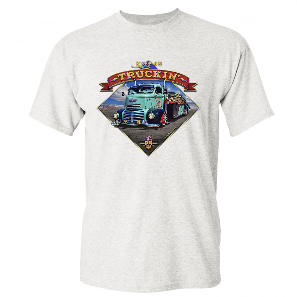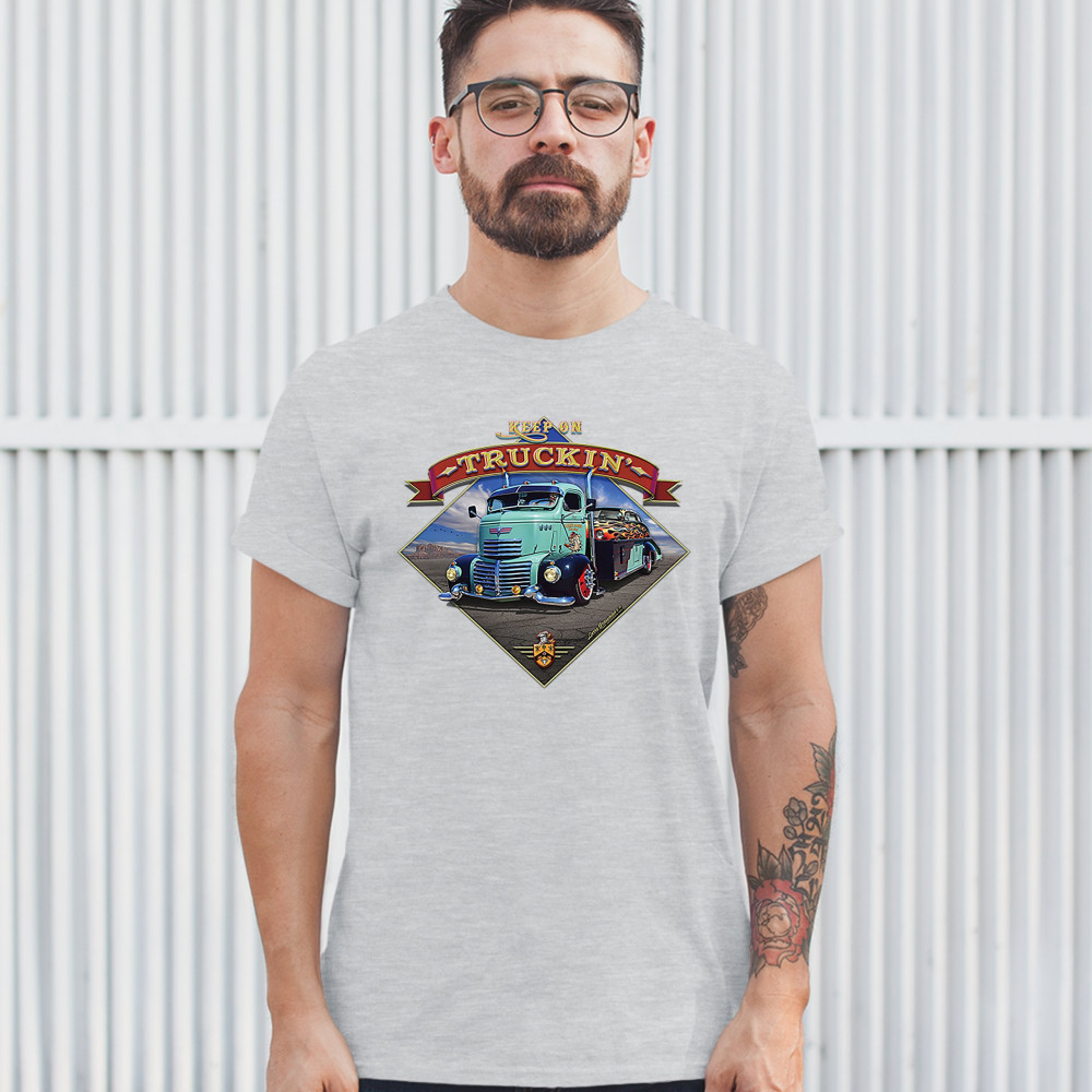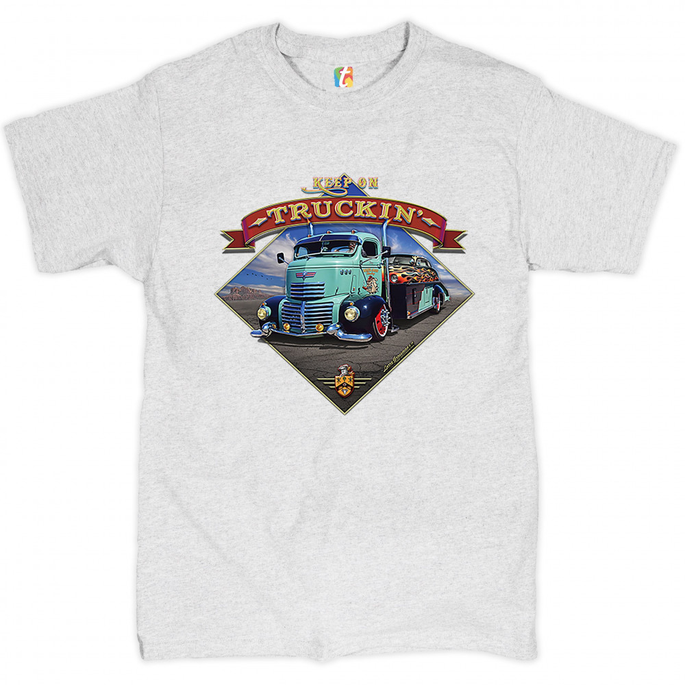 KEEP ON TRUCKIN' t-shirt route 66 retro vintage truck driver men's tee ash gray