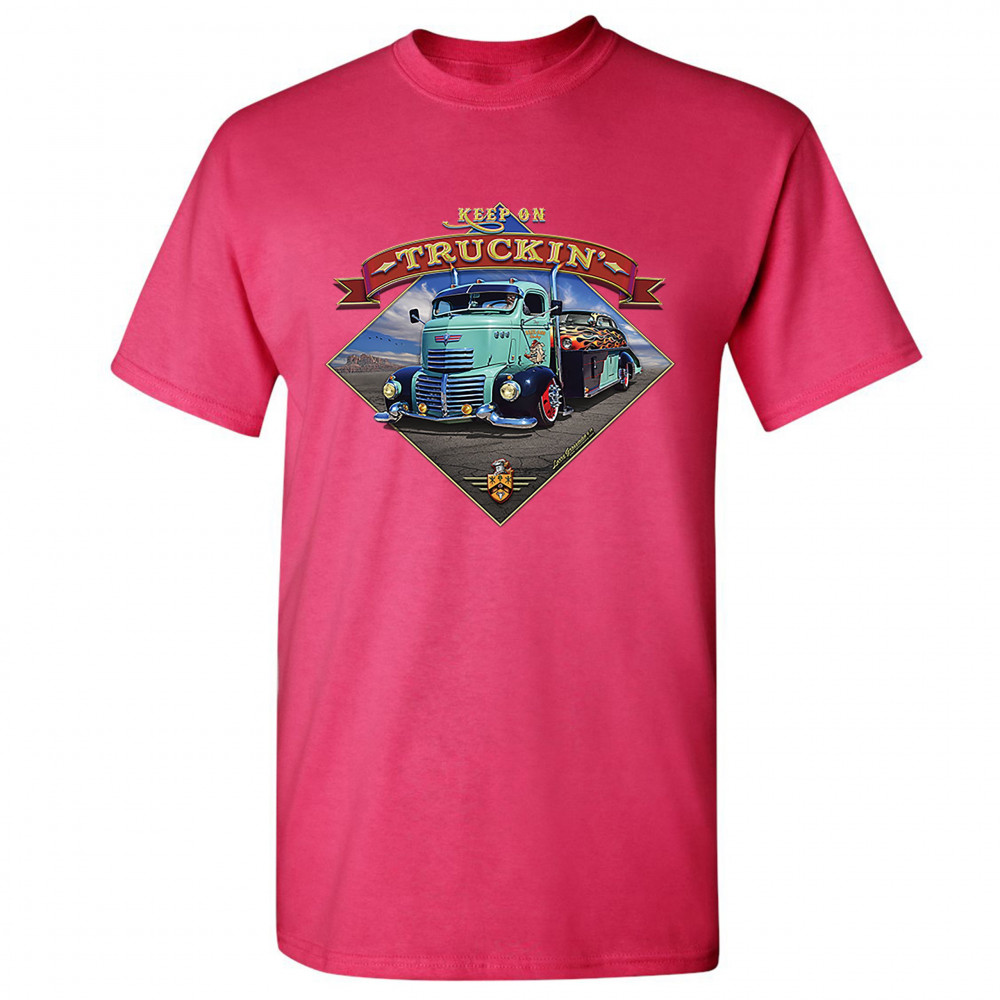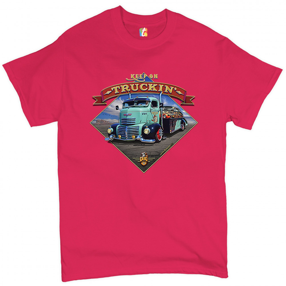 KEEP ON TRUCKIN' t-shirt route 66 retro vintage truck driver men's tee hot pink