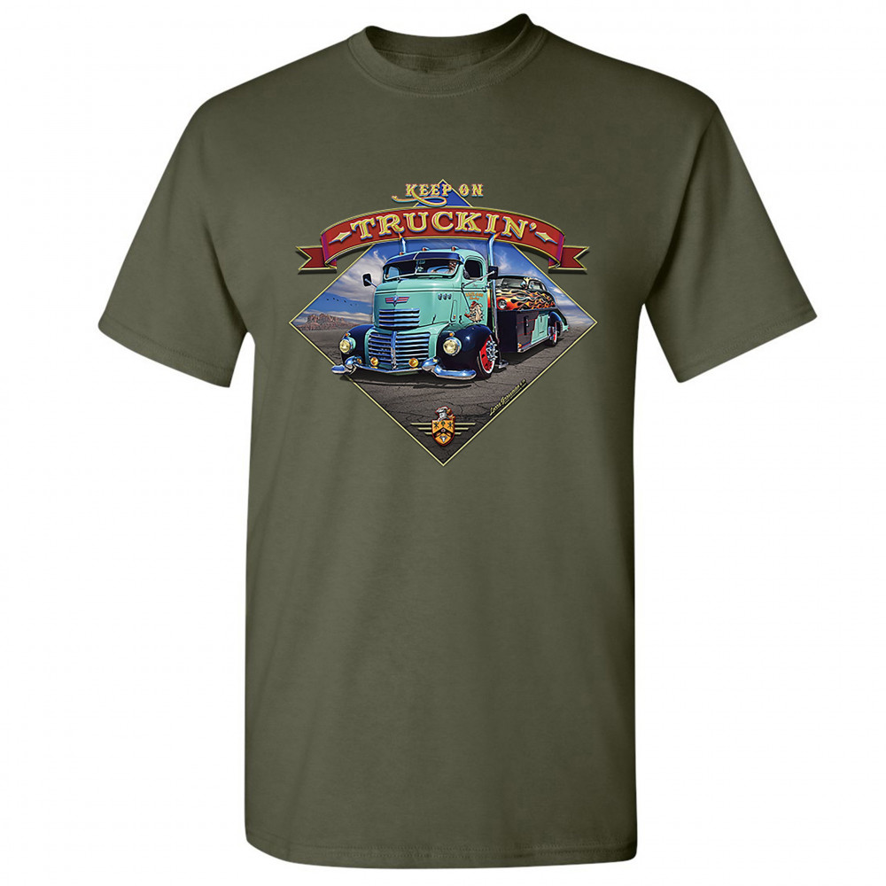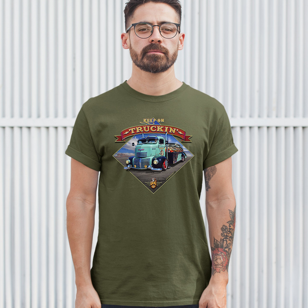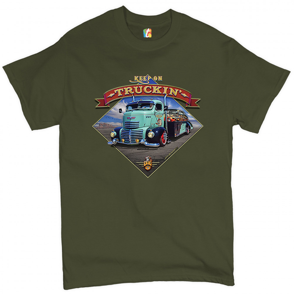 KEEP ON TRUCKIN' t-shirt route 66 retro vintage truck driver men's tee military green