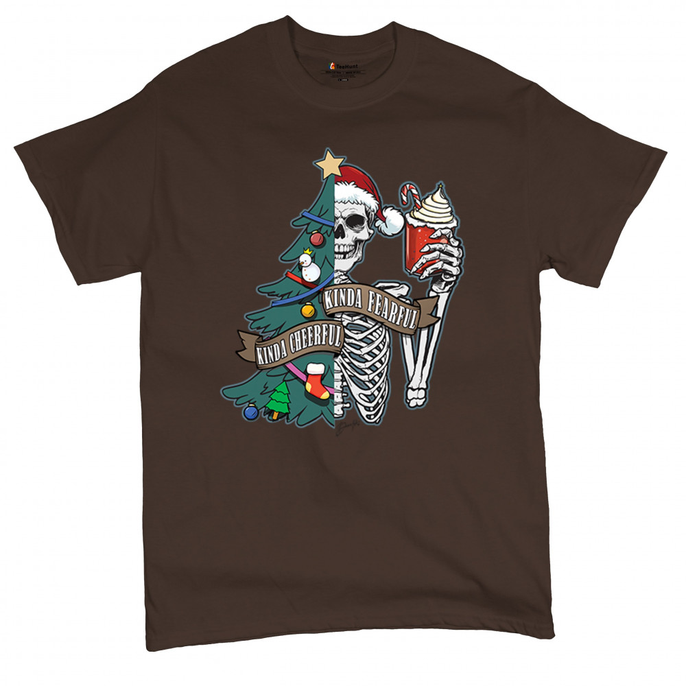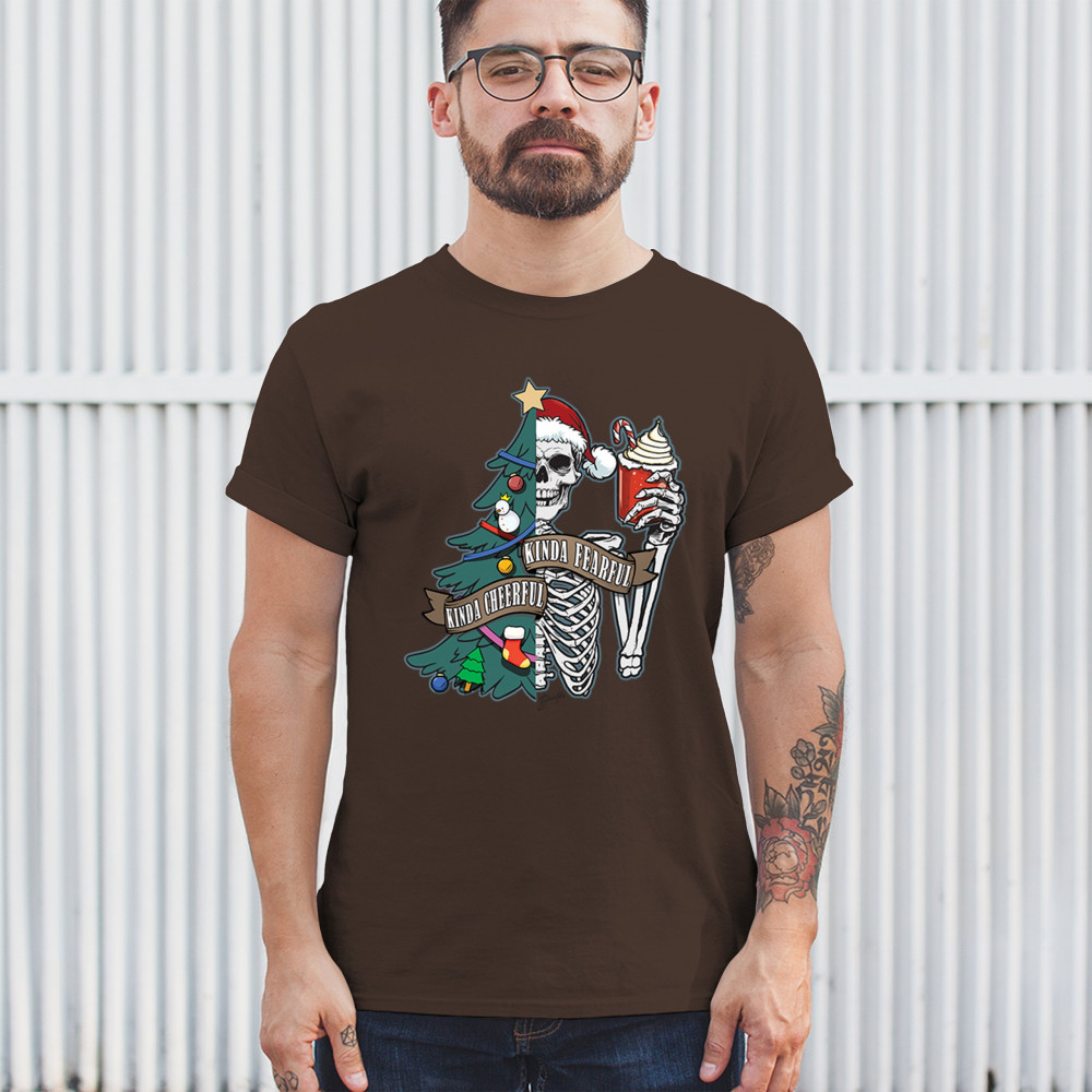 This creative Kinda Cheerful, Kinda Fearful design is a perfect blend of festive and spooky fun! Featuring a half-decorated Christmas tree and skeleton, it’s ideal for those who love combining Halloween and Christmas vibes. Great for secret Santa gifts, matching holiday pajamas, or rocking at your next ugly sweater contest. Perfect for office parties, family mornings, or simply adding some unique charm to your Feliz Navidad celebrations.