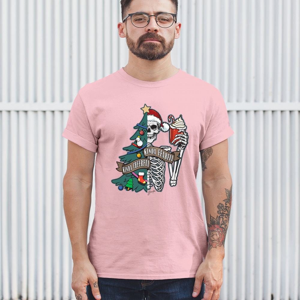 This creative Kinda Cheerful, Kinda Fearful design is a perfect blend of festive and spooky fun! Featuring a half-decorated Christmas tree and skeleton, it’s ideal for those who love combining Halloween and Christmas vibes. Great for secret Santa gifts, matching holiday pajamas, or rocking at your next ugly sweater contest. Perfect for office parties, family mornings, or simply adding some unique charm to your Feliz Navidad celebrations.