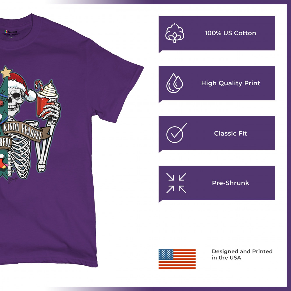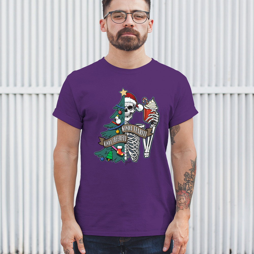 This creative Kinda Cheerful, Kinda Fearful design is a perfect blend of festive and spooky fun! Featuring a half-decorated Christmas tree and skeleton, it’s ideal for those who love combining Halloween and Christmas vibes. Great for secret Santa gifts, matching holiday pajamas, or rocking at your next ugly sweater contest. Perfect for office parties, family mornings, or simply adding some unique charm to your Feliz Navidad celebrations.