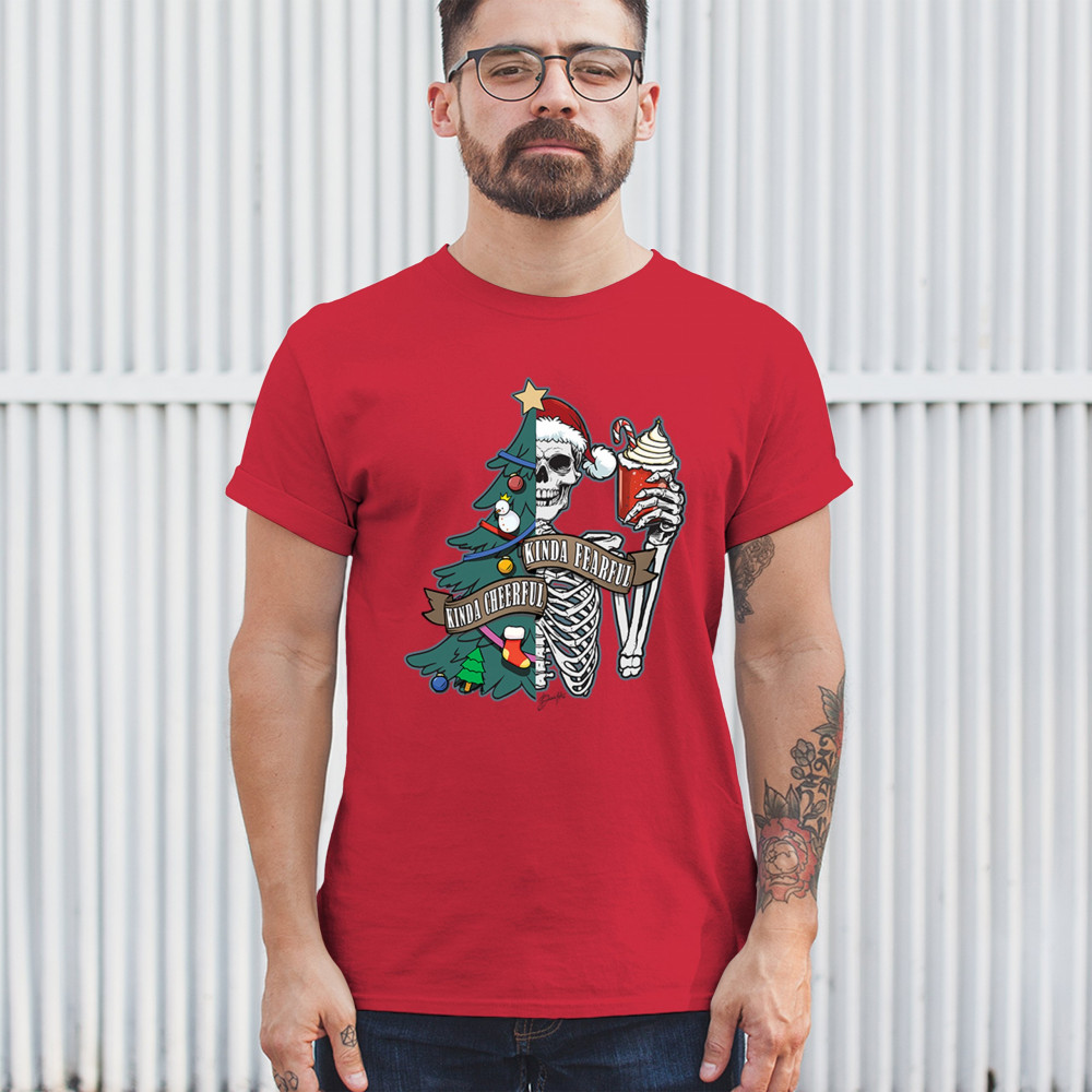 This creative Kinda Cheerful, Kinda Fearful design is a perfect blend of festive and spooky fun! Featuring a half-decorated Christmas tree and skeleton, it’s ideal for those who love combining Halloween and Christmas vibes. Great for secret Santa gifts, matching holiday pajamas, or rocking at your next ugly sweater contest. Perfect for office parties, family mornings, or simply adding some unique charm to your Feliz Navidad celebrations.
