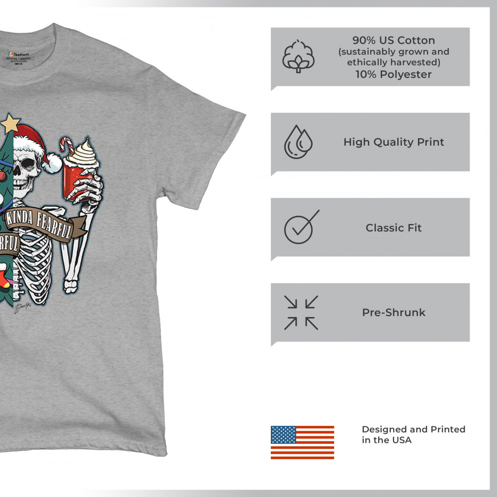 This creative Kinda Cheerful, Kinda Fearful design is a perfect blend of festive and spooky fun! Featuring a half-decorated Christmas tree and skeleton, it’s ideal for those who love combining Halloween and Christmas vibes. Great for secret Santa gifts, matching holiday pajamas, or rocking at your next ugly sweater contest. Perfect for office parties, family mornings, or simply adding some unique charm to your Feliz Navidad celebrations.