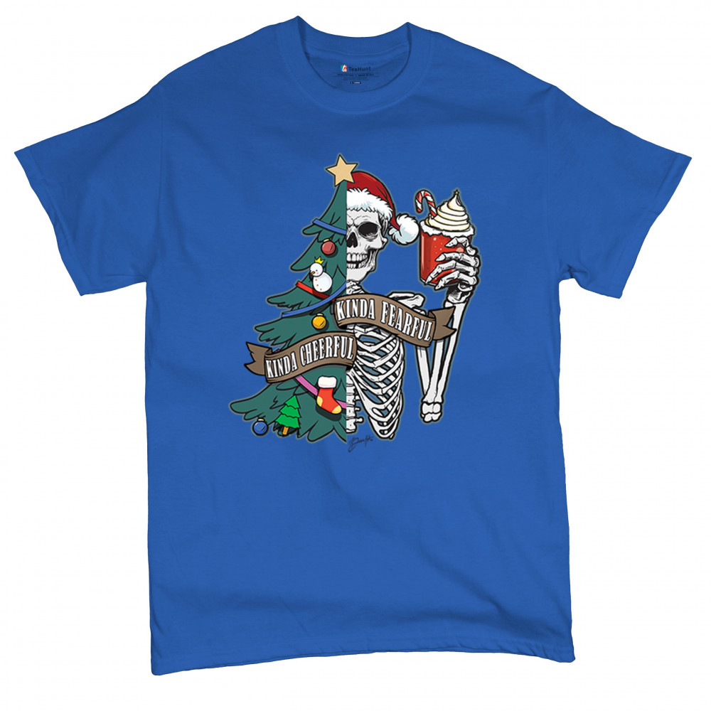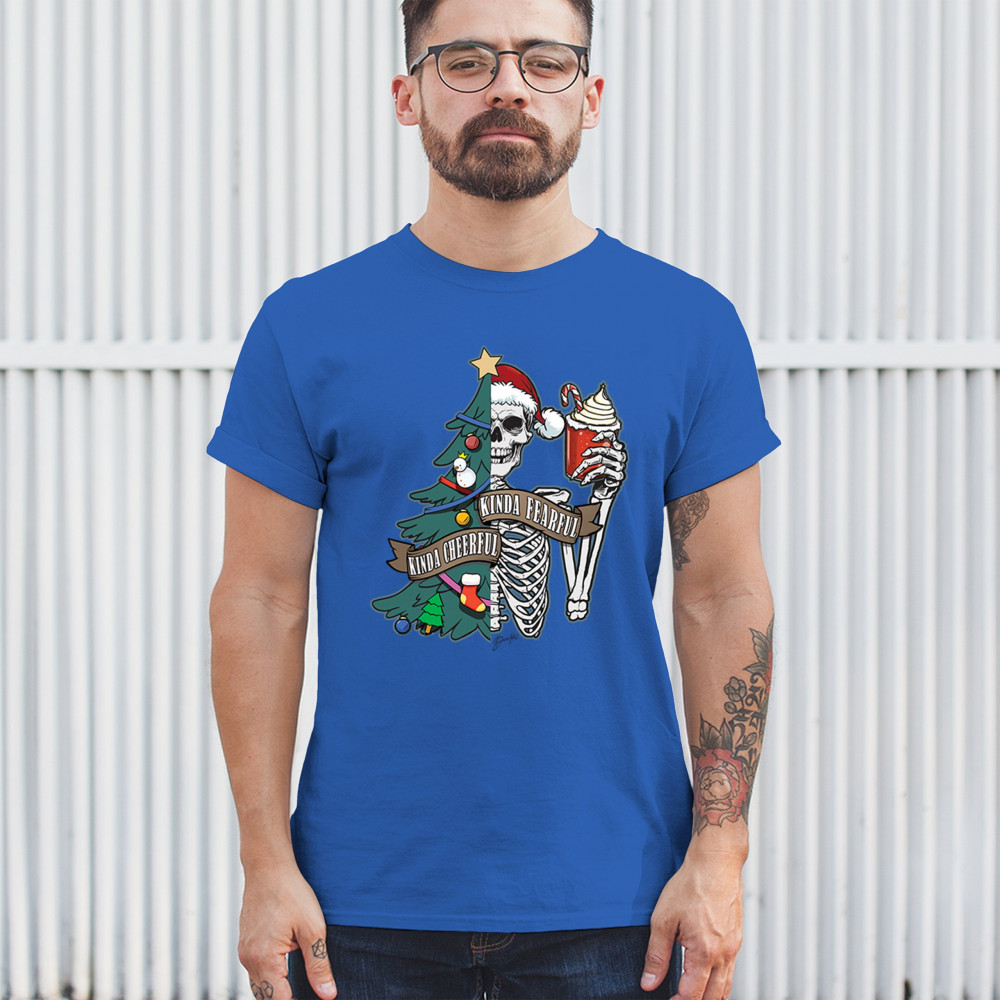 This creative Kinda Cheerful, Kinda Fearful design is a perfect blend of festive and spooky fun! Featuring a half-decorated Christmas tree and skeleton, it’s ideal for those who love combining Halloween and Christmas vibes. Great for secret Santa gifts, matching holiday pajamas, or rocking at your next ugly sweater contest. Perfect for office parties, family mornings, or simply adding some unique charm to your Feliz Navidad celebrations.