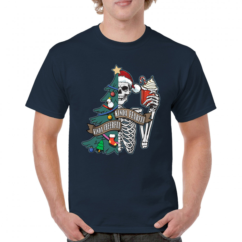 This creative Kinda Cheerful, Kinda Fearful design is a perfect blend of festive and spooky fun! Featuring a half-decorated Christmas tree and skeleton, it’s ideal for those who love combining Halloween and Christmas vibes. Great for secret Santa gifts, matching holiday pajamas, or rocking at your next ugly sweater contest. Perfect for office parties, family mornings, or simply adding some unique charm to your Feliz Navidad celebrations.