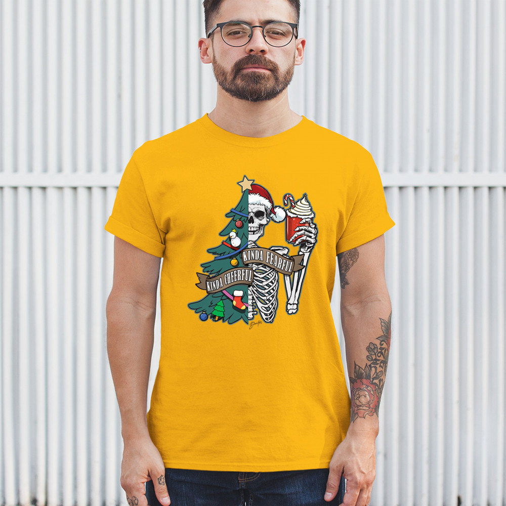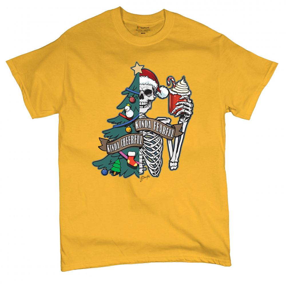 This creative Kinda Cheerful, Kinda Fearful design is a perfect blend of festive and spooky fun! Featuring a half-decorated Christmas tree and skeleton, it’s ideal for those who love combining Halloween and Christmas vibes. Great for secret Santa gifts, matching holiday pajamas, or rocking at your next ugly sweater contest. Perfect for office parties, family mornings, or simply adding some unique charm to your Feliz Navidad celebrations.