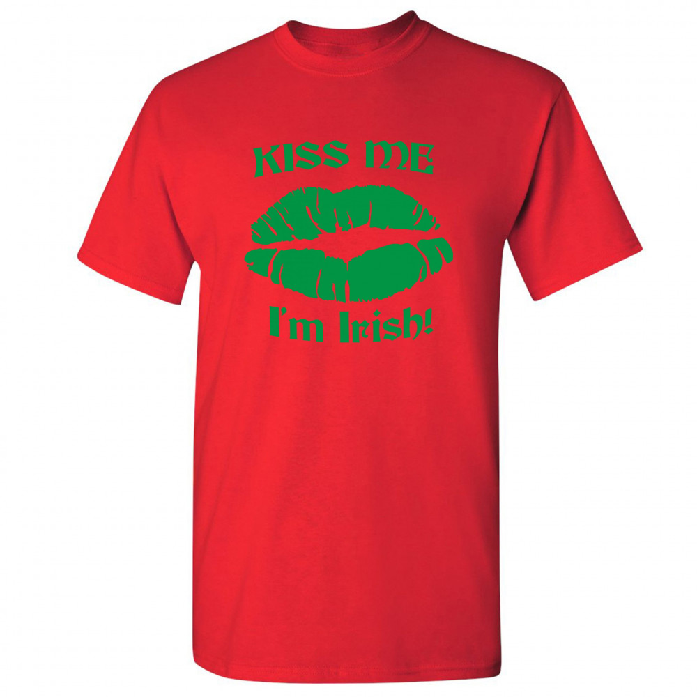 KISS ME I'M IRISH! t-shirt funny st. patrick's day shenanigans men's tee red