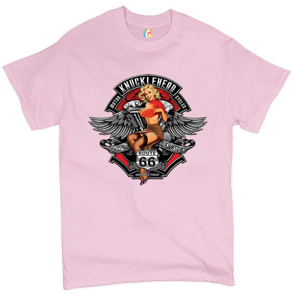 KNUCKLEHEAD MOTORCYCLES t-shirt old time classics pin-up girl biker men's tee light pink