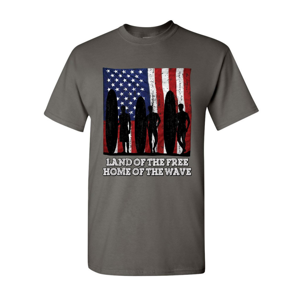 LAND OF THE FREE SURFING t-shirt home of the wave beach tee shirt charcoal
