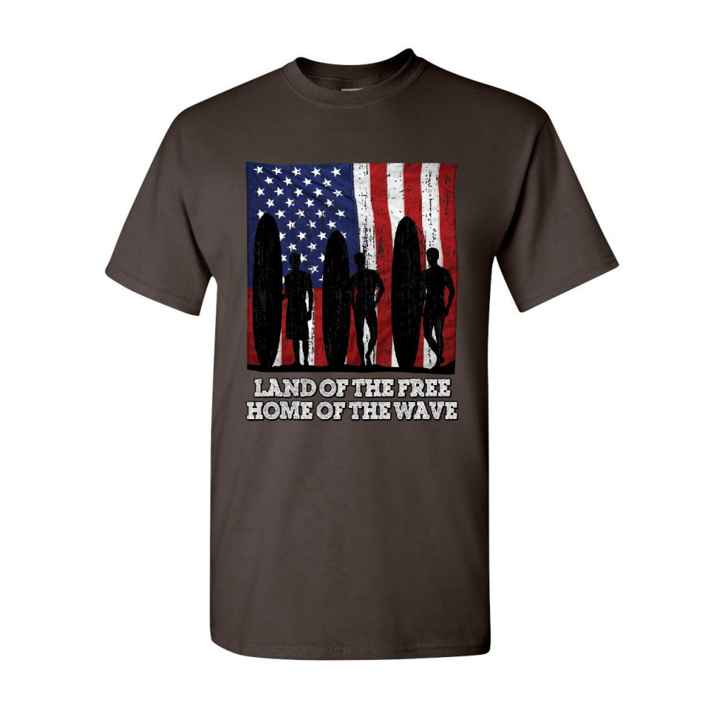 LAND OF THE FREE SURFING t-shirt home of the wave beach tee shirt brown