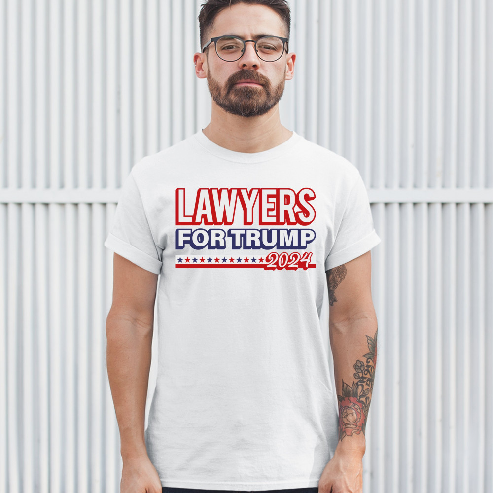 A political print saying "lawyers for Trump 2024". A great choice to wear for a Trump rally or give as a gift to a Donald Trump supporter before 2024 presidential elections.