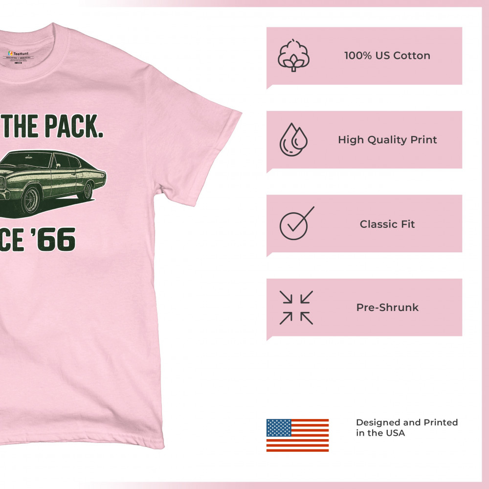 Power and pride collide in this “Lead the Pack Since ’66†design, built for those who appreciate vintage muscle car glory. With a legendary 1966 street icon front and center, it delivers bold styling and retro horsepower vibes. A go-to for cruise night kings, classic gearheads, and anyone who lives life in the fast lane.
