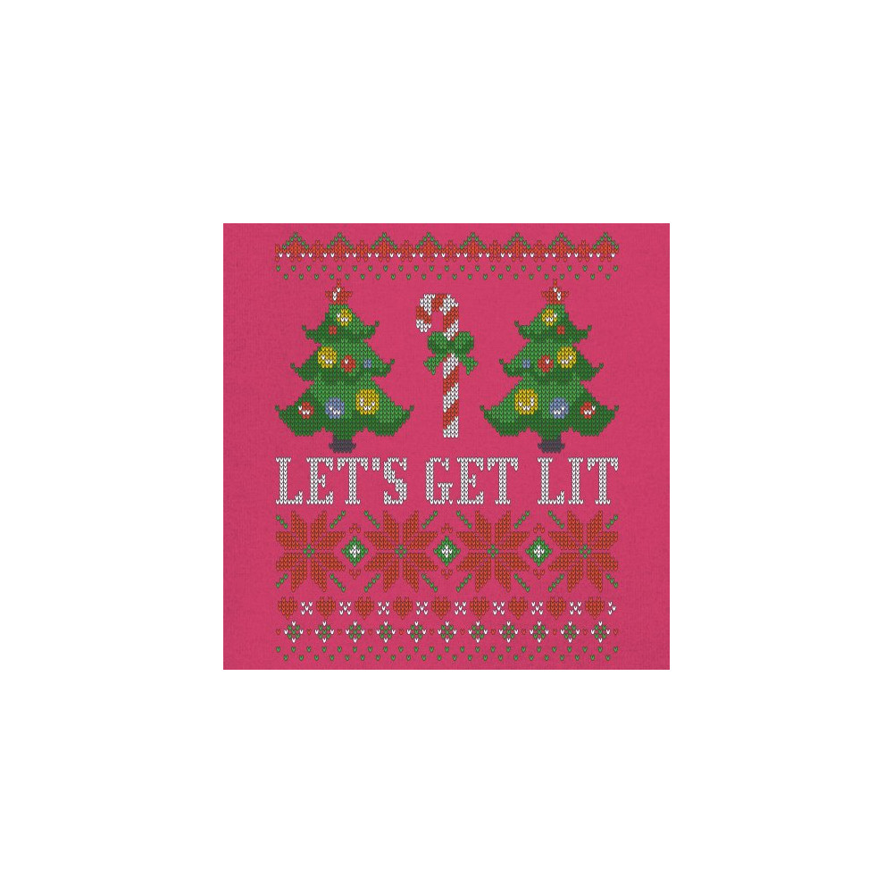 A print saying: "Let's Get Lit" and depicting two Christmas trees and a candy cane between them. The print is decorated as an ugly sweater. A great choice for a Christmas eve celebration.