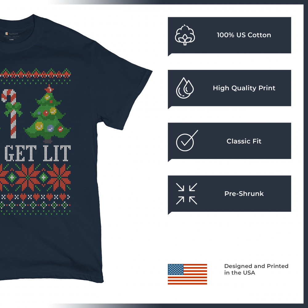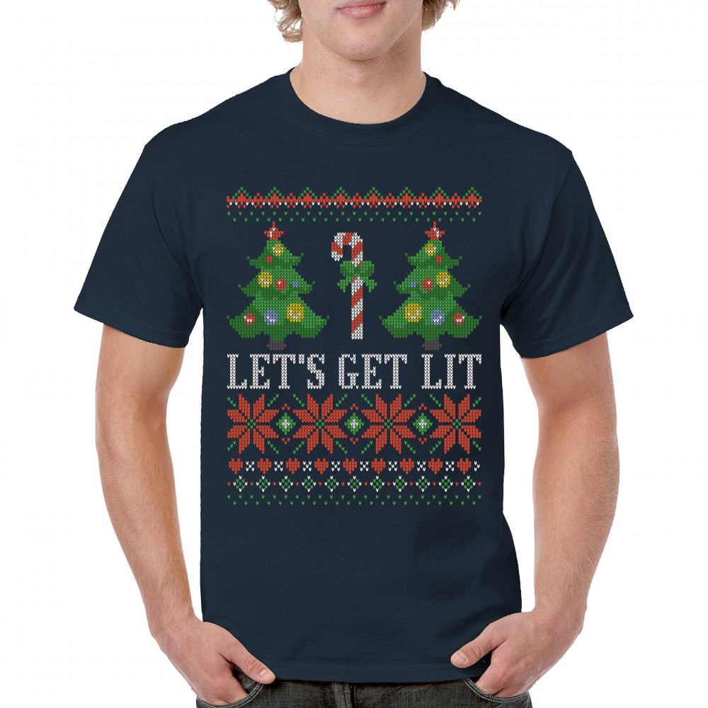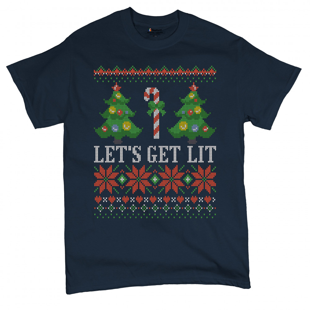 LET'S GET LIT t-shirt ugly sweater merry christmas candy cane men's tee navy blue