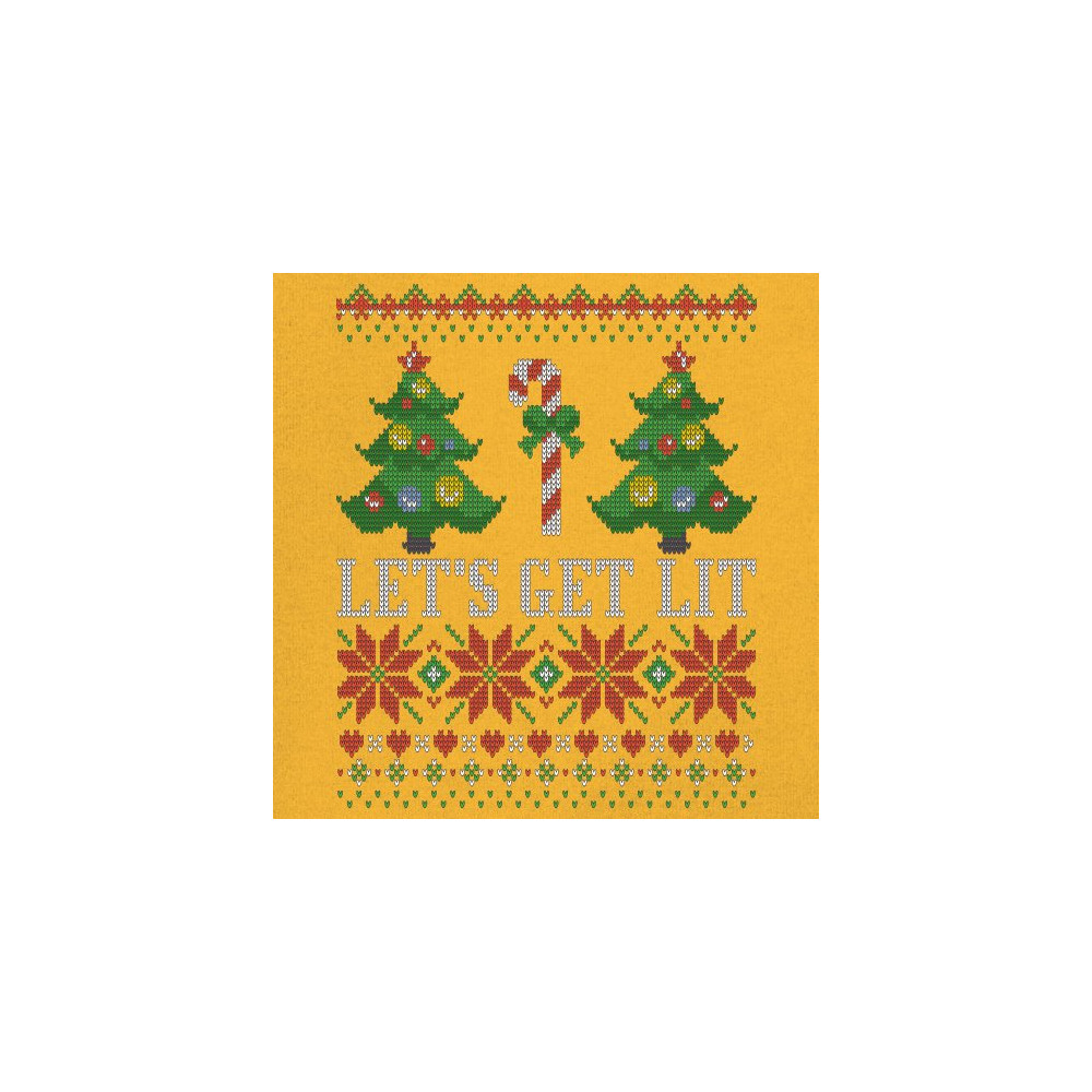 A print saying: "Let's Get Lit" and depicting two Christmas trees and a candy cane between them. The print is decorated as an ugly sweater. A great choice for a Christmas eve celebration.