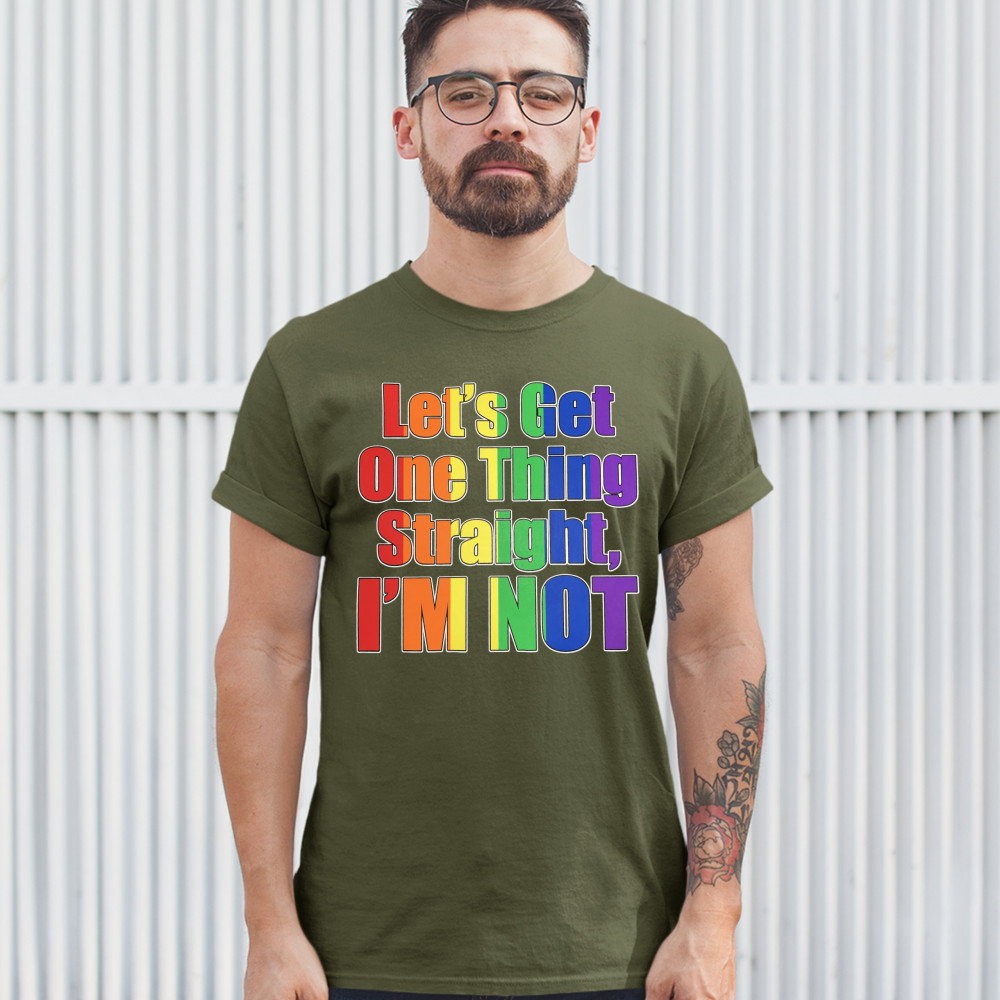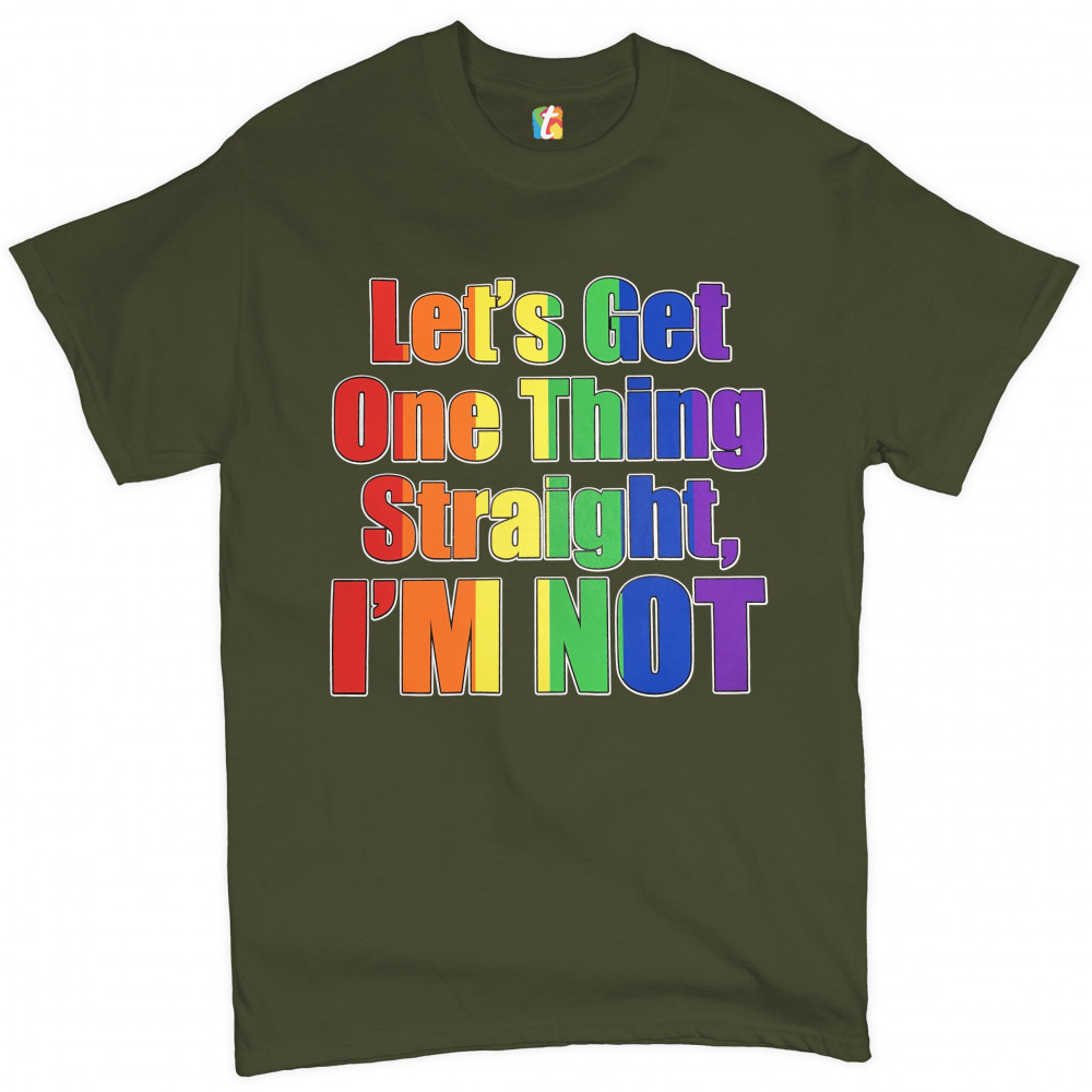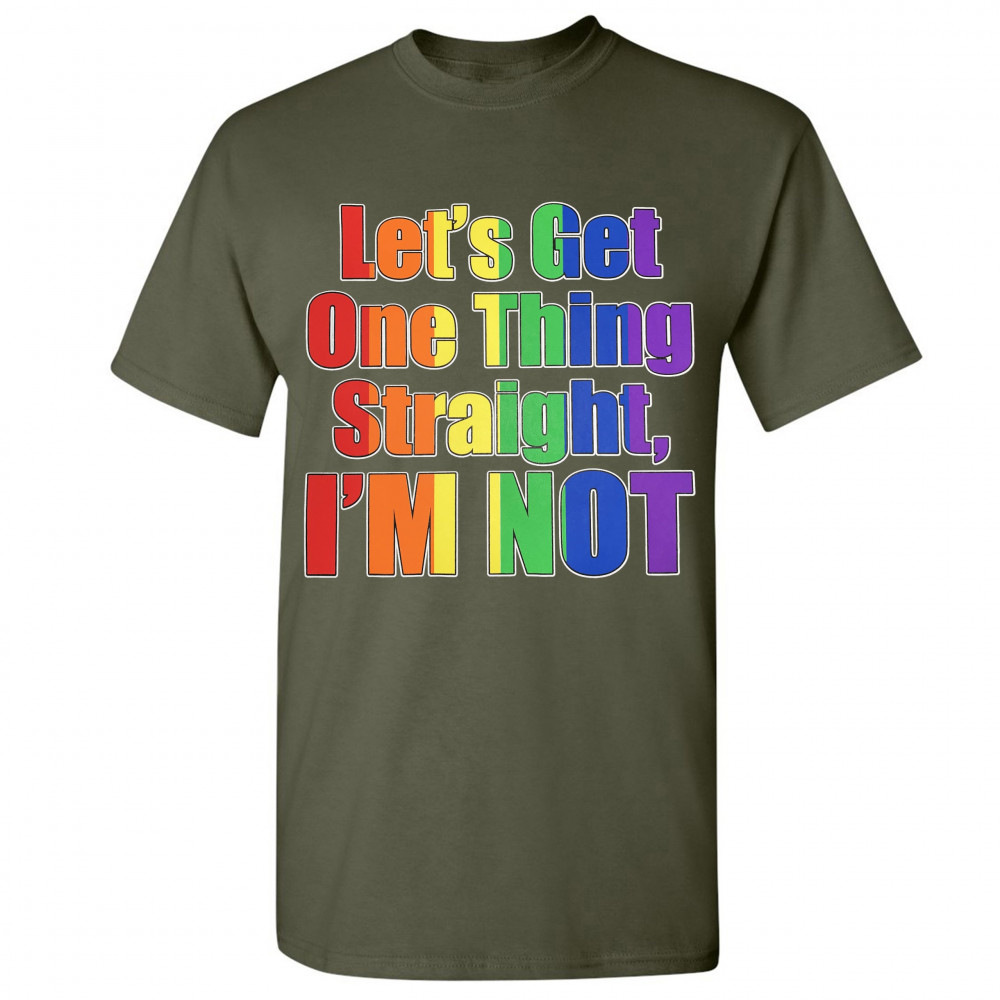 LET'S GET ONE THING STRAIGHT, I'M NOT t-shirt lgbt gay rainbow men's tee military green
