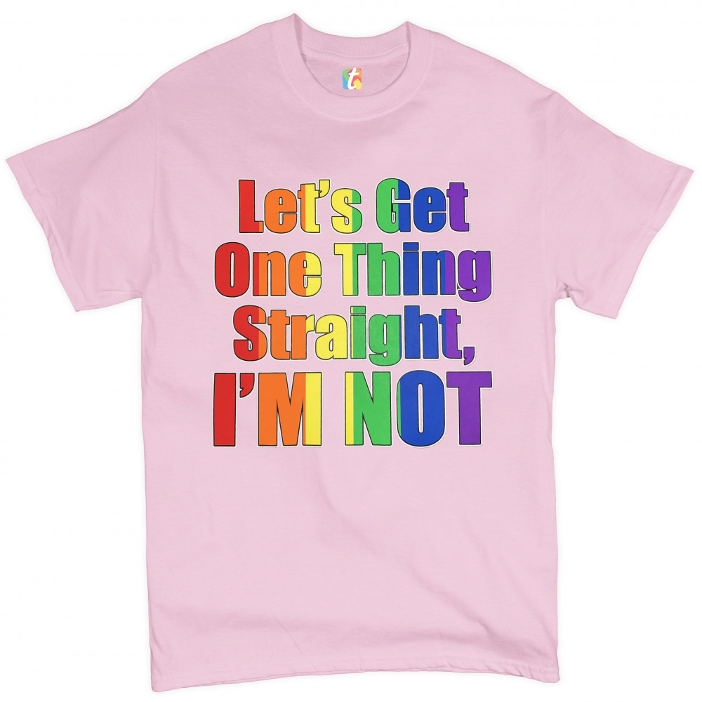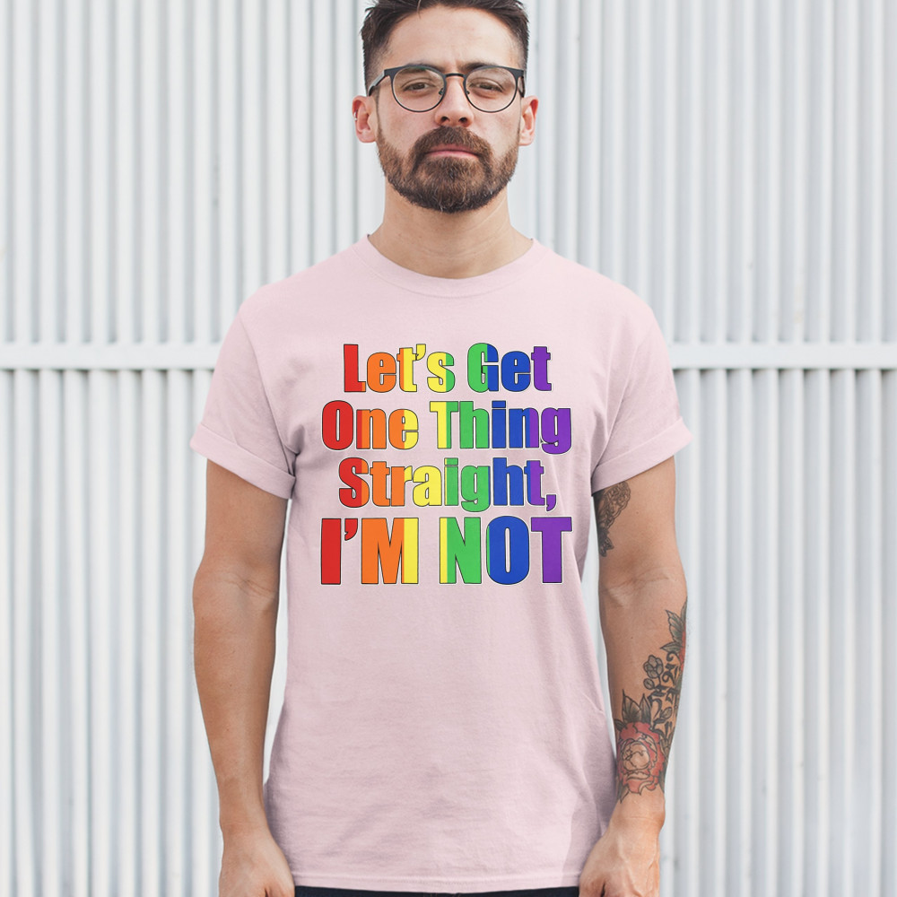 LET'S GET ONE THING STRAIGHT, I'M NOT t-shirt lgbt gay rainbow men's tee light pink
