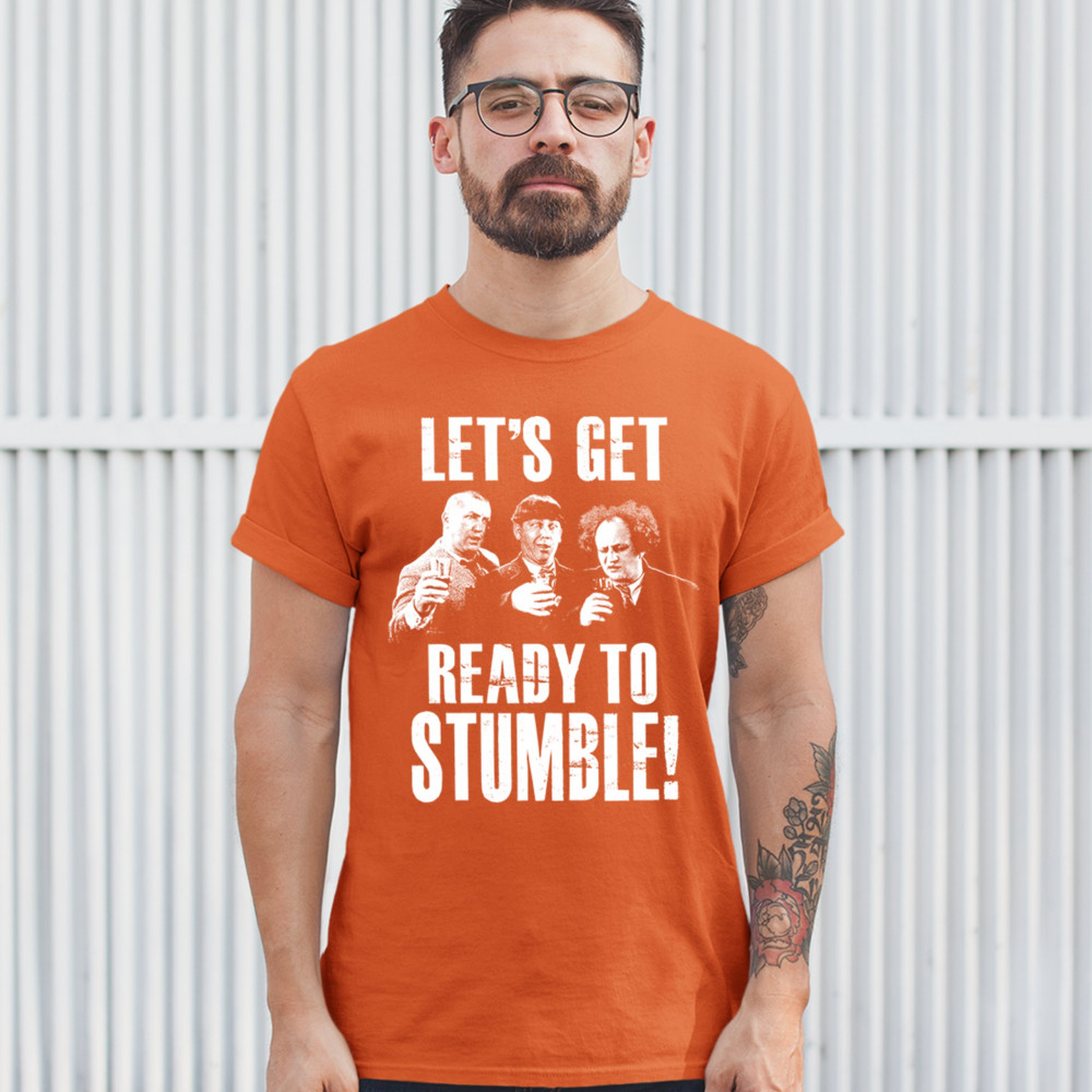 LET'S GET READY TO STUMBLE t-shirt the three stooges funny vintage men's tee orange