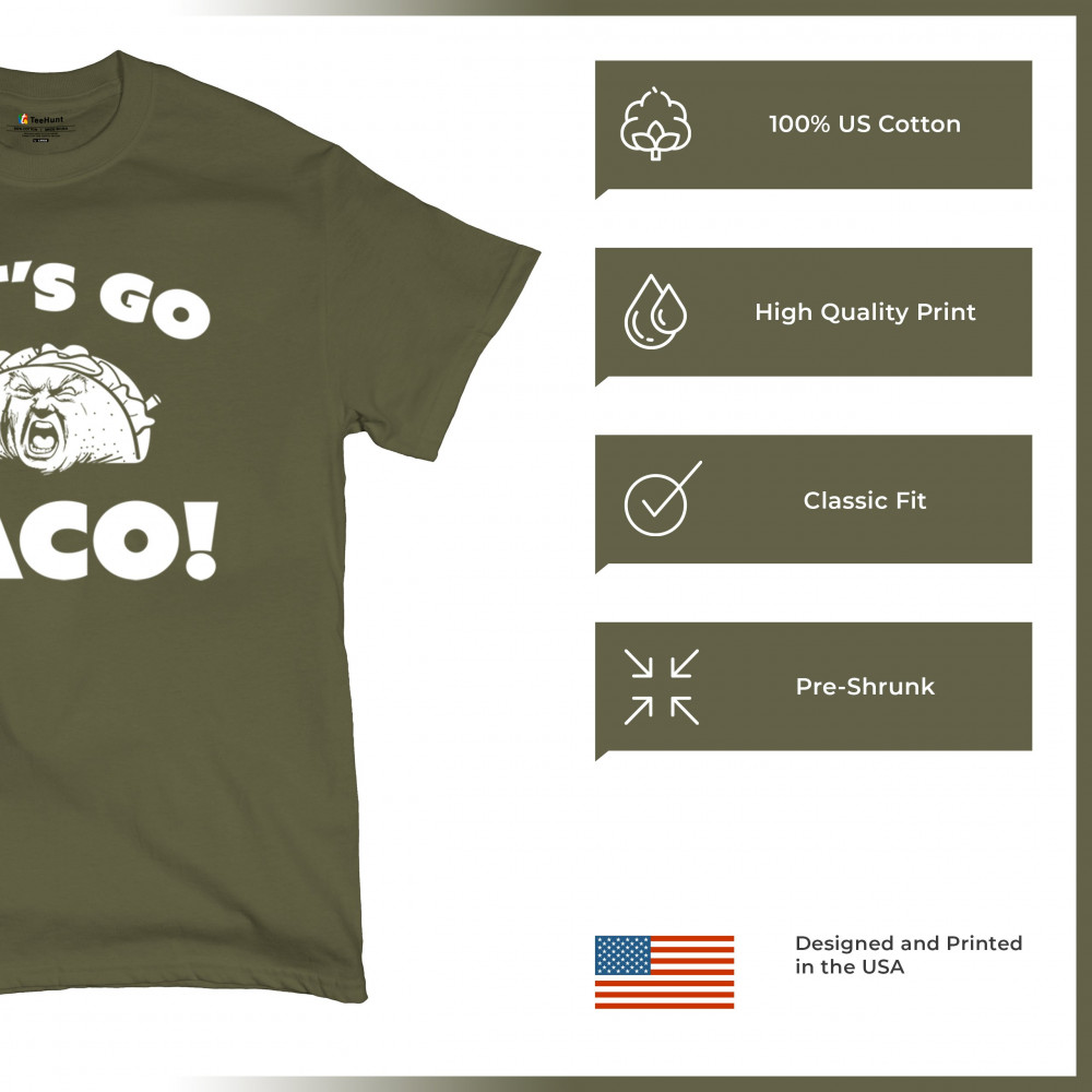 Let’s Go TACO—Trump Always Chickens Out—delivers anti-Trump satire and Gen Z political humor in one brutal protest meme shirt. This satirical protest wear mocks cowardice, anti-cult politics, and authoritarian worship while pushing political resistance fashion. A perfect liberal activism tee and democratic movement shirt for anyone who believes in the no kings design philosophy.