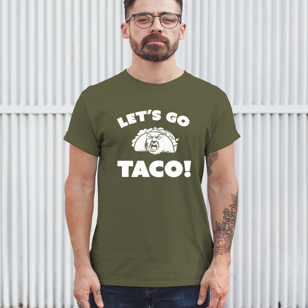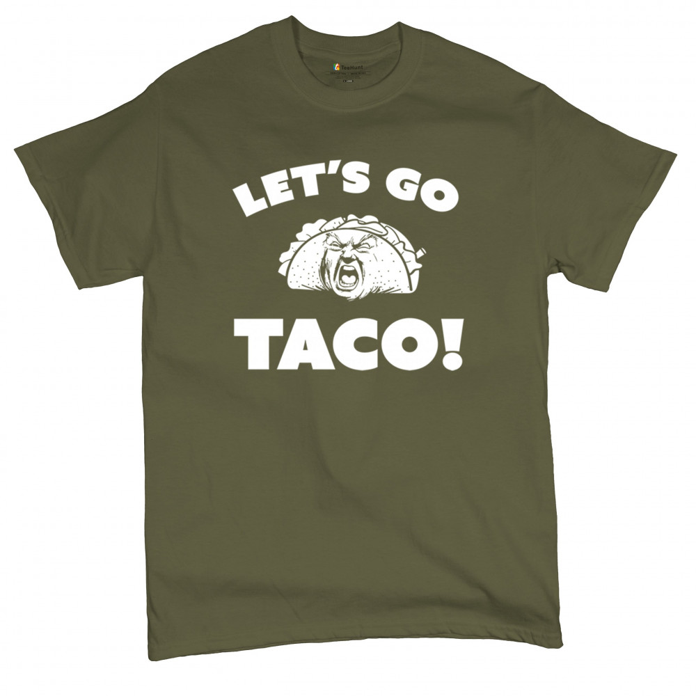 Let’s Go TACO means Trump Always Chickens Out—a bold protest design mocking cowardice, cult politics, and authoritarian fanboys.