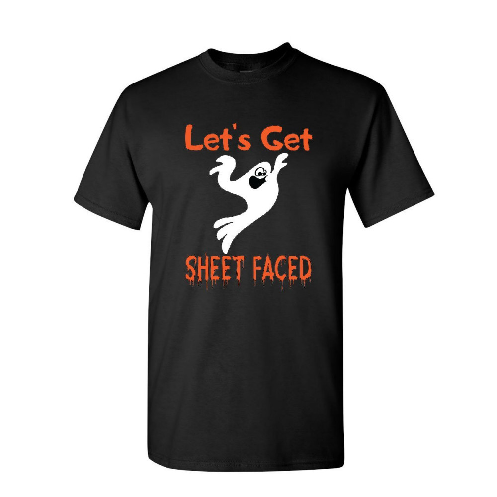 LET'S GET SHEET FACED t-shirt funny drinking ghost halloween boo mens tee shirt black