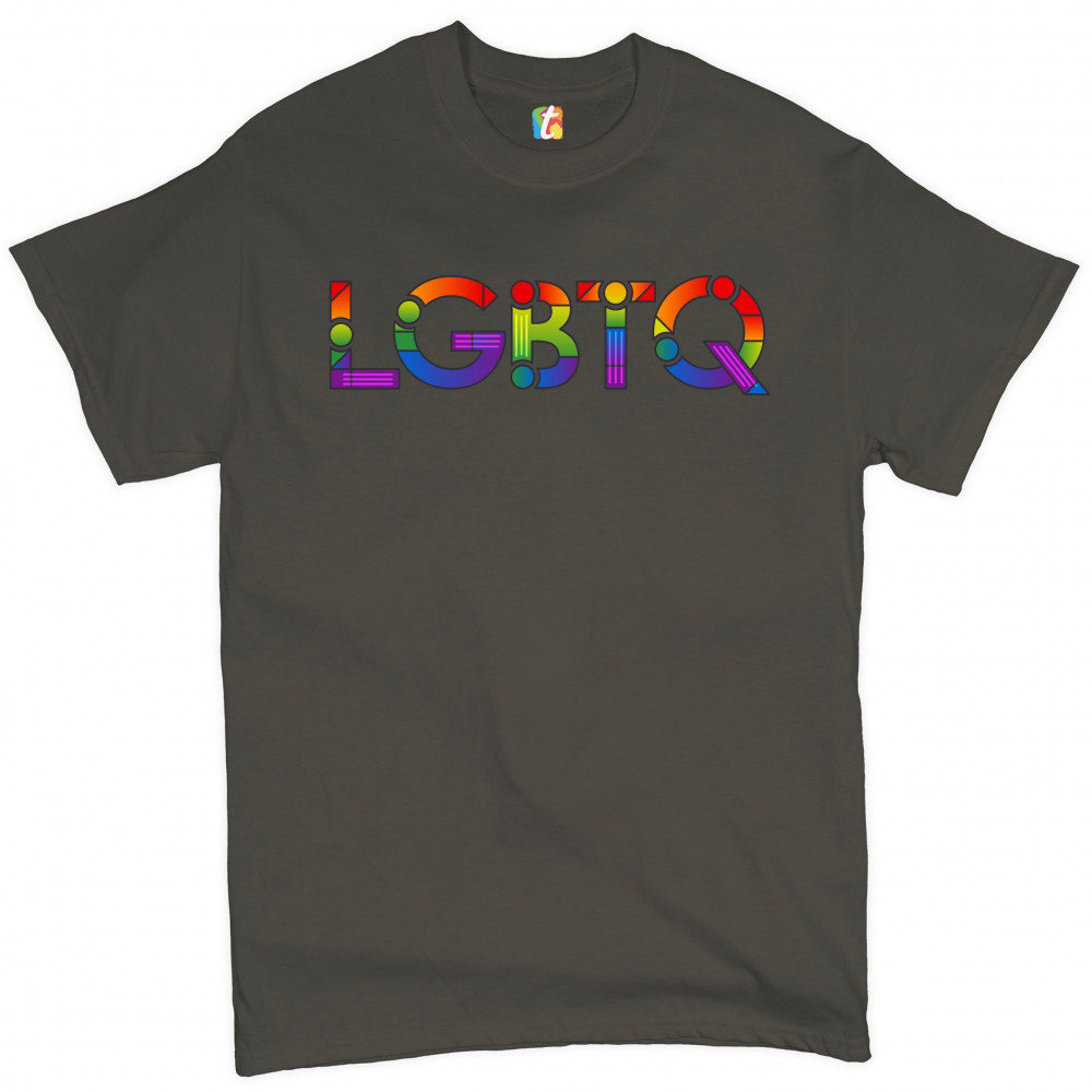 A print featuring the abbreviation "LGBTQ". Great choice to wear as a proud queer person.