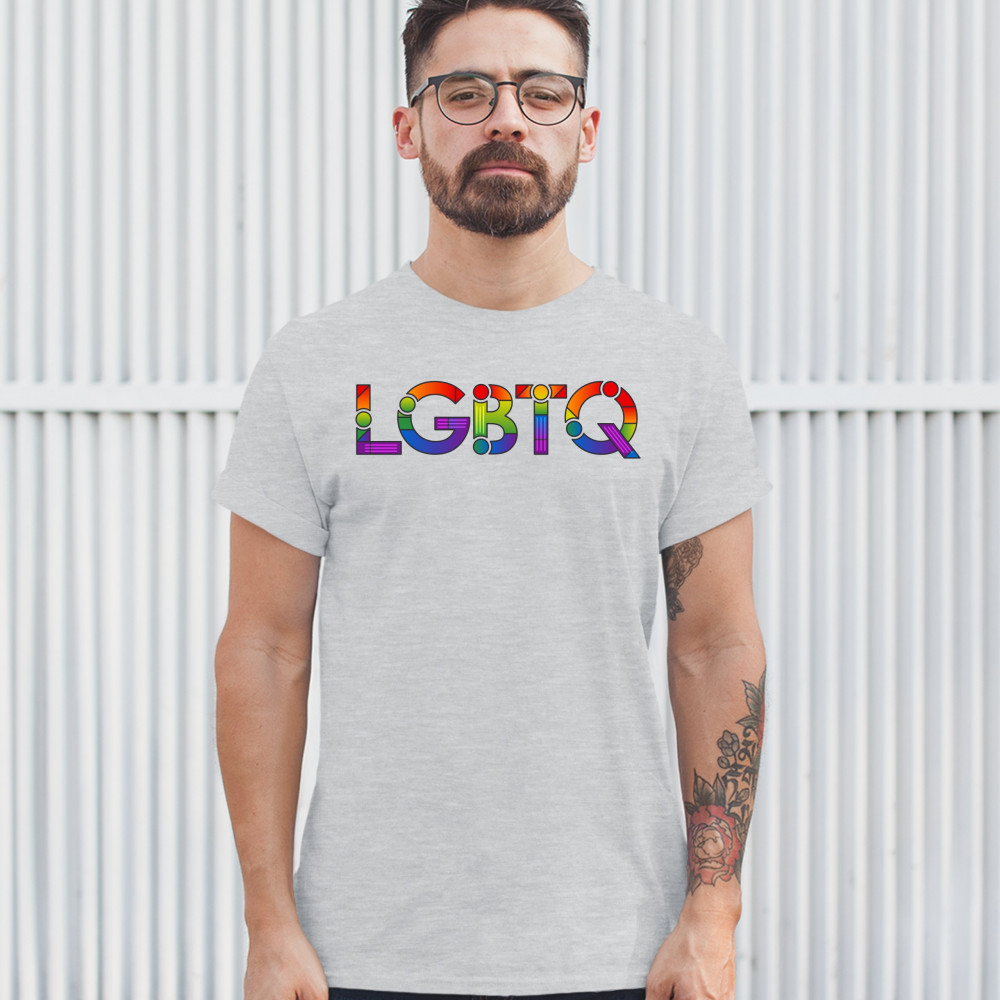 A print featuring the abbreviation "LGBTQ". Great choice to wear as a proud queer person.