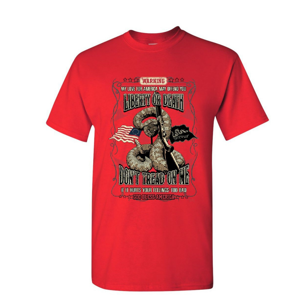 LIBERTY OR DEATH DON'T TREAD ON ME t-shirt gadsden flag america mens tee shirt red
