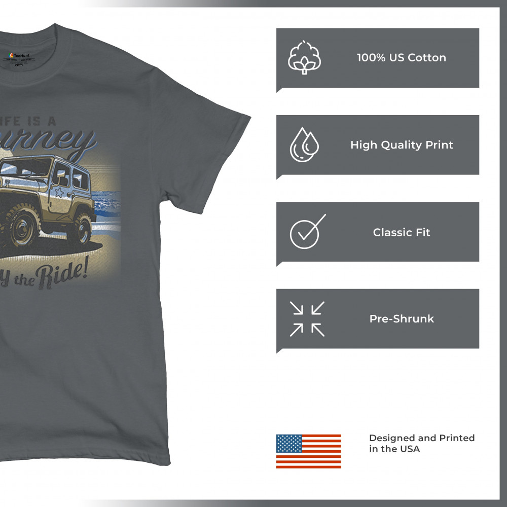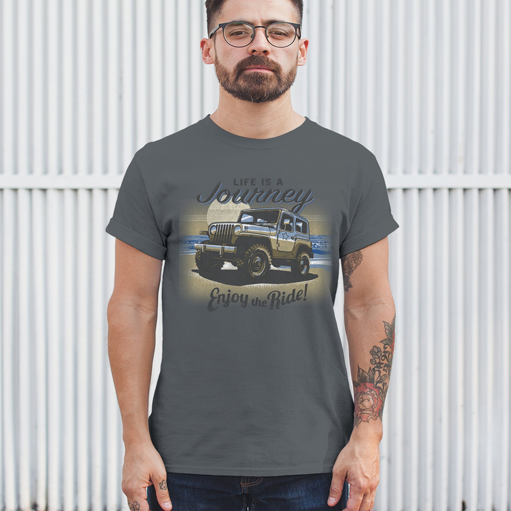 Celebrate adventure with the "Life is a Journey, Enjoy the Ride" design, perfect for off-road enthusiasts and adventure seekers. An ideal gift for outdoor lovers.