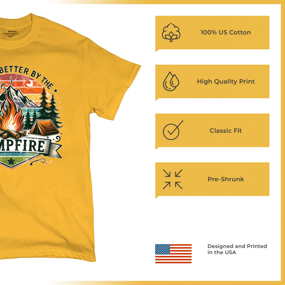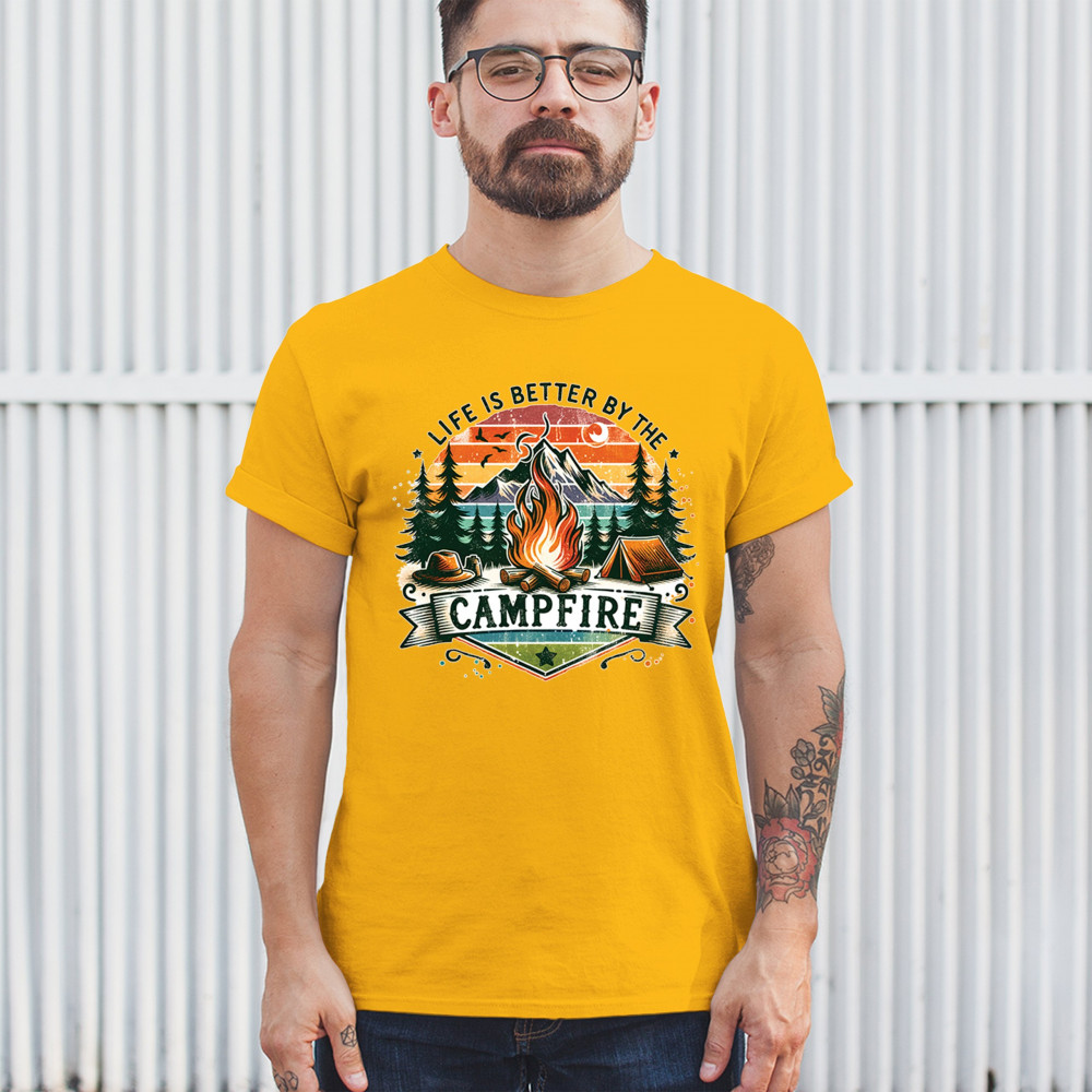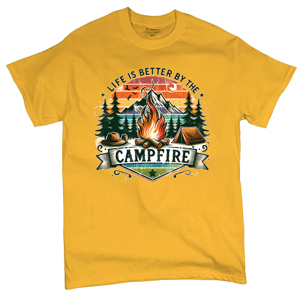 Life is Better by the Campfire brings rustic charm and outdoor adventure together with a glowing fire, mountain scenery, and pine forest. Ideal for forest lovers, campers, and national park explorers, this design evokes wilderness vibes, tent life, and the thrill of travel. Great value for anyone who believes adventure begins under the stars.
