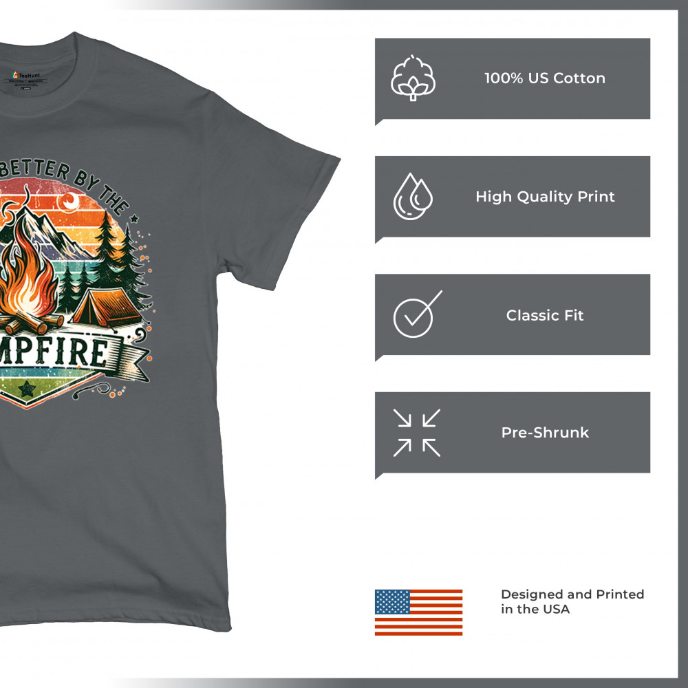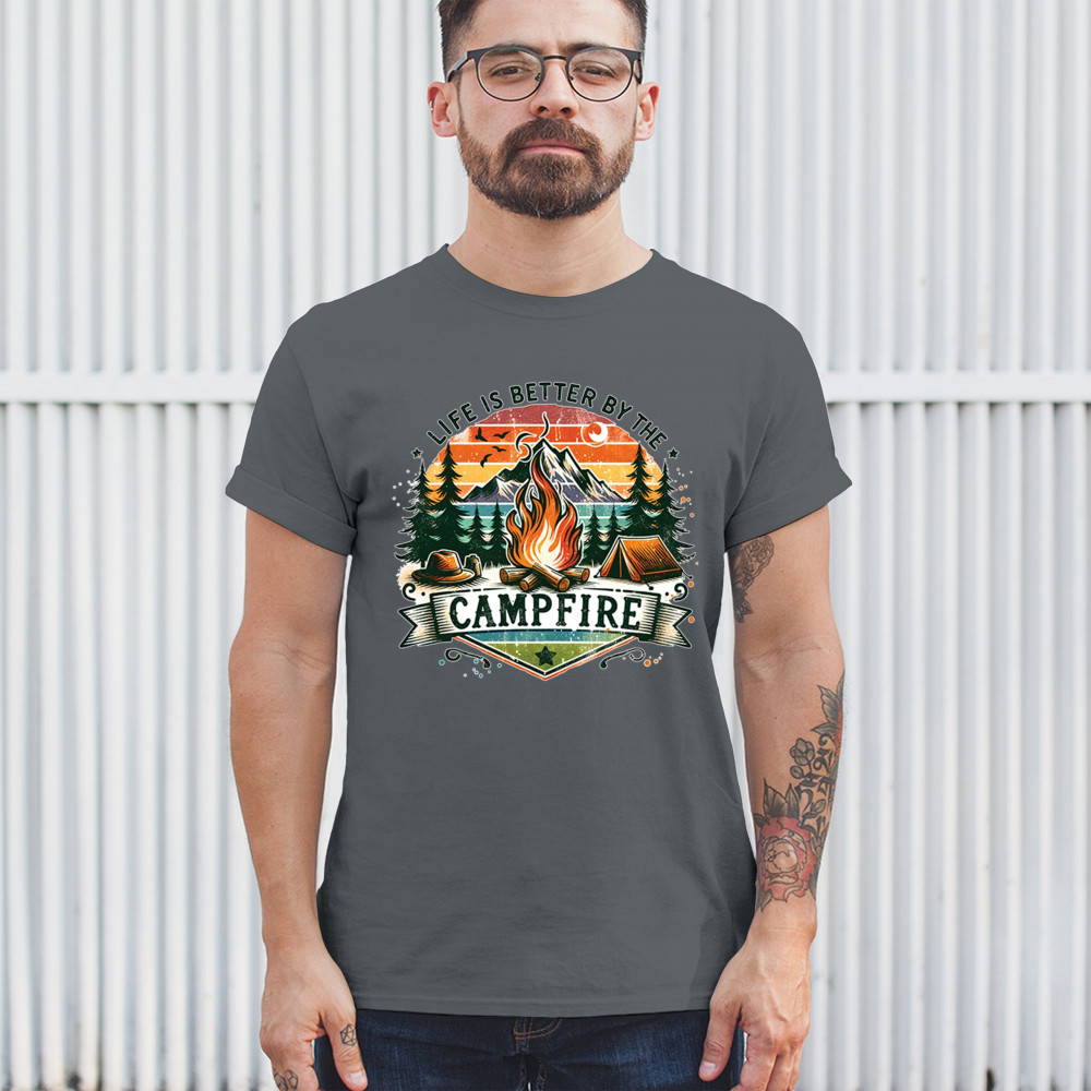 Life is Better by the Campfire brings rustic charm and outdoor adventure together with a glowing fire, mountain scenery, and pine forest. Ideal for forest lovers, campers, and national park explorers, this design evokes wilderness vibes, tent life, and the thrill of travel. Great value for anyone who believes adventure begins under the stars.