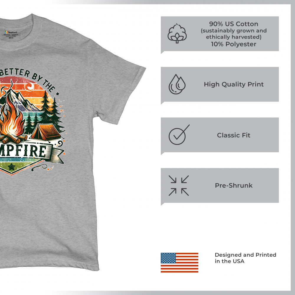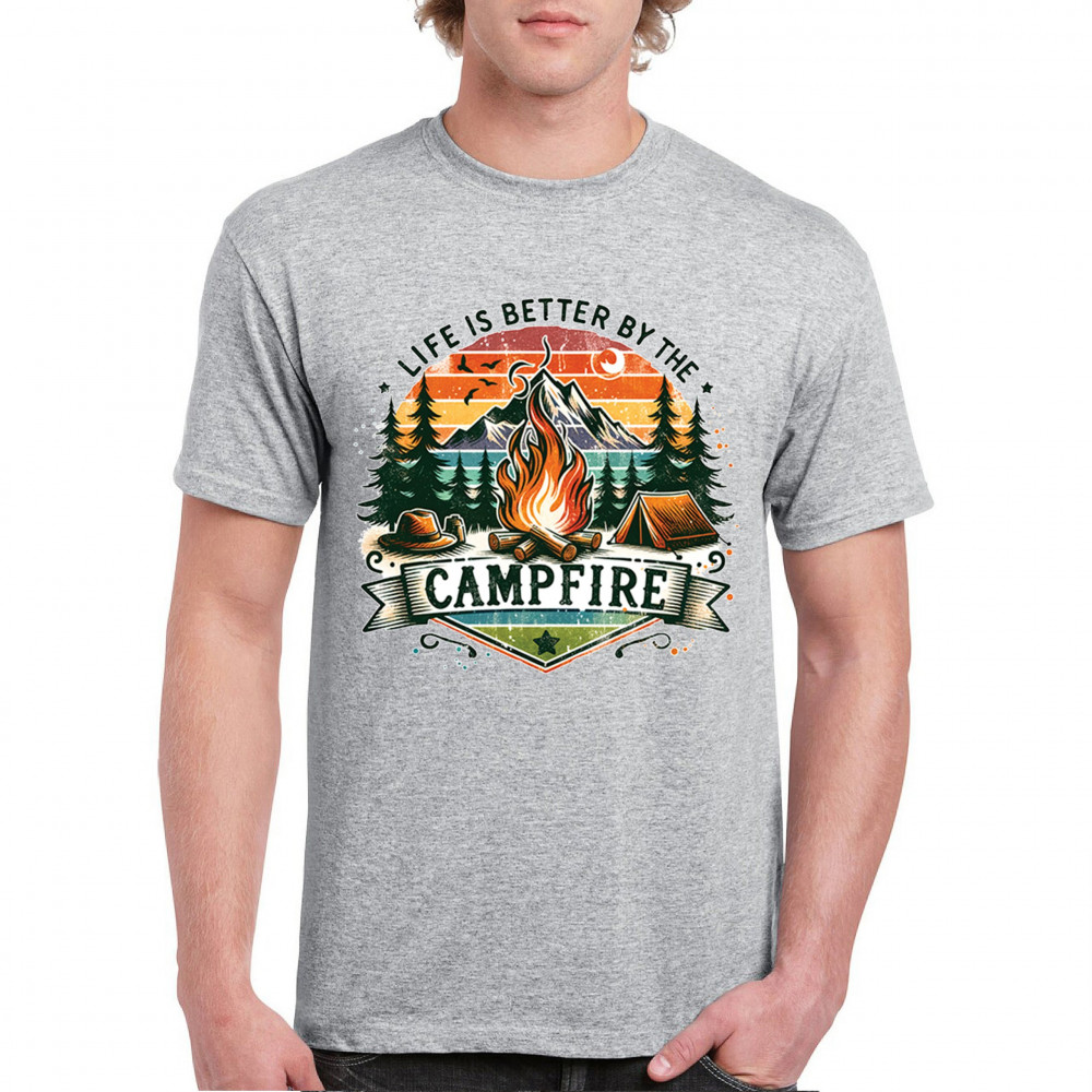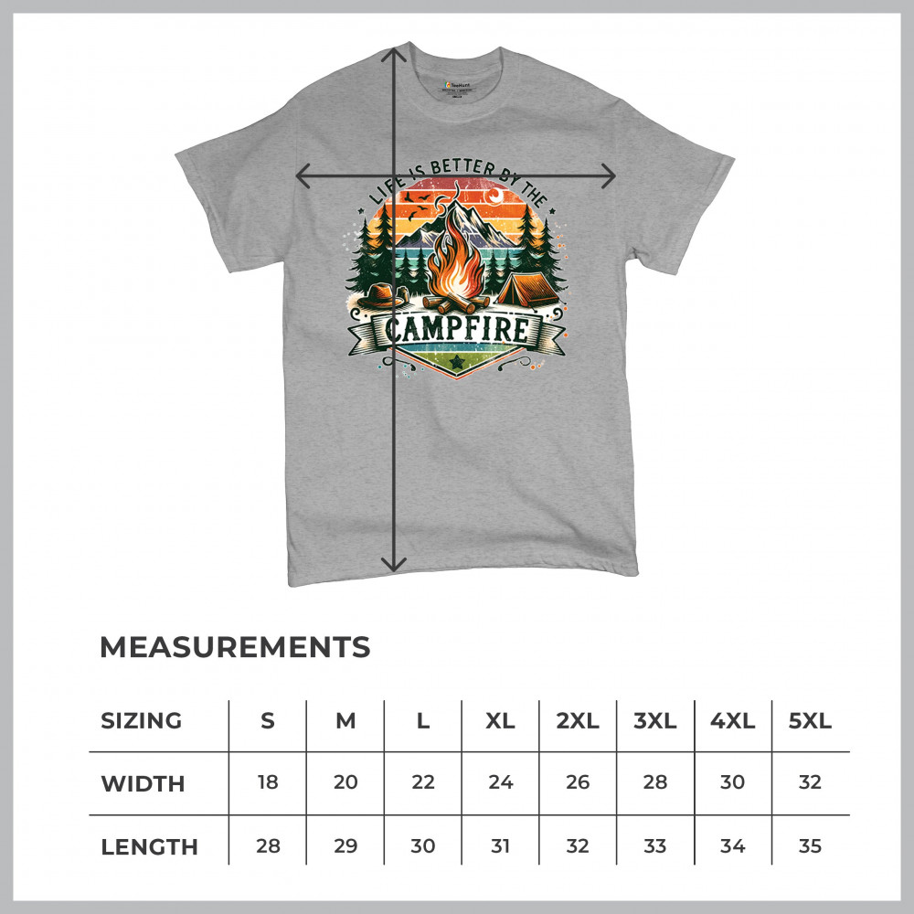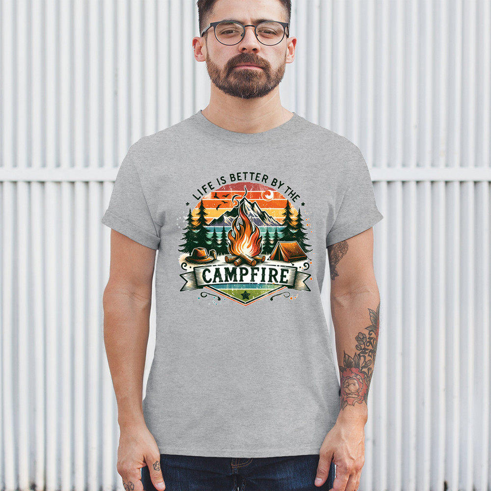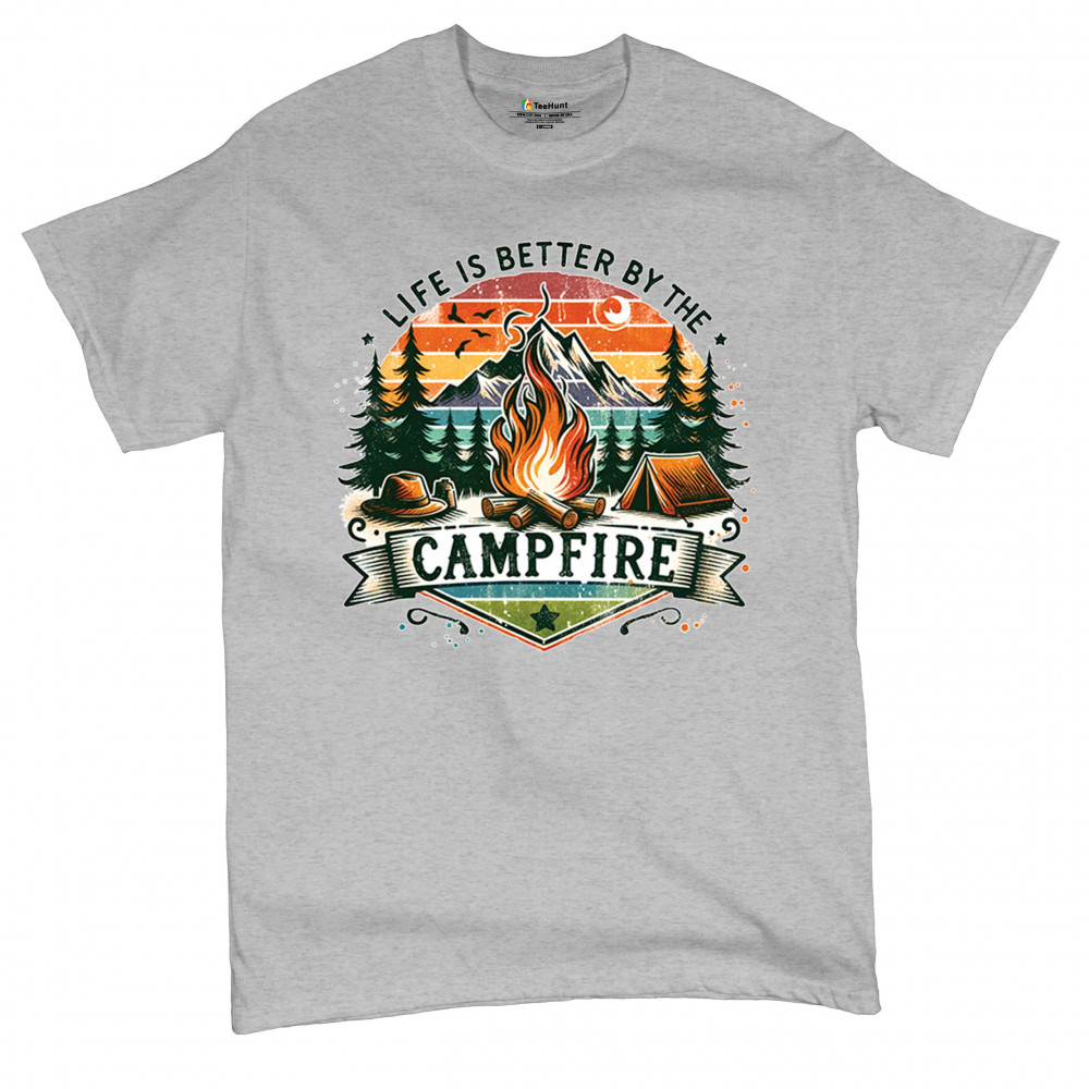 Life is Better by the Campfire brings rustic charm and outdoor adventure together with a glowing fire, mountain scenery, and pine forest. Ideal for forest lovers, campers, and national park explorers, this design evokes wilderness vibes, tent life, and the thrill of travel. Great value for anyone who believes adventure begins under the stars.